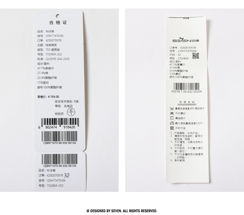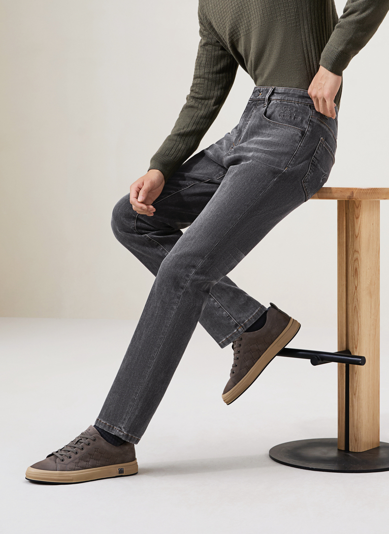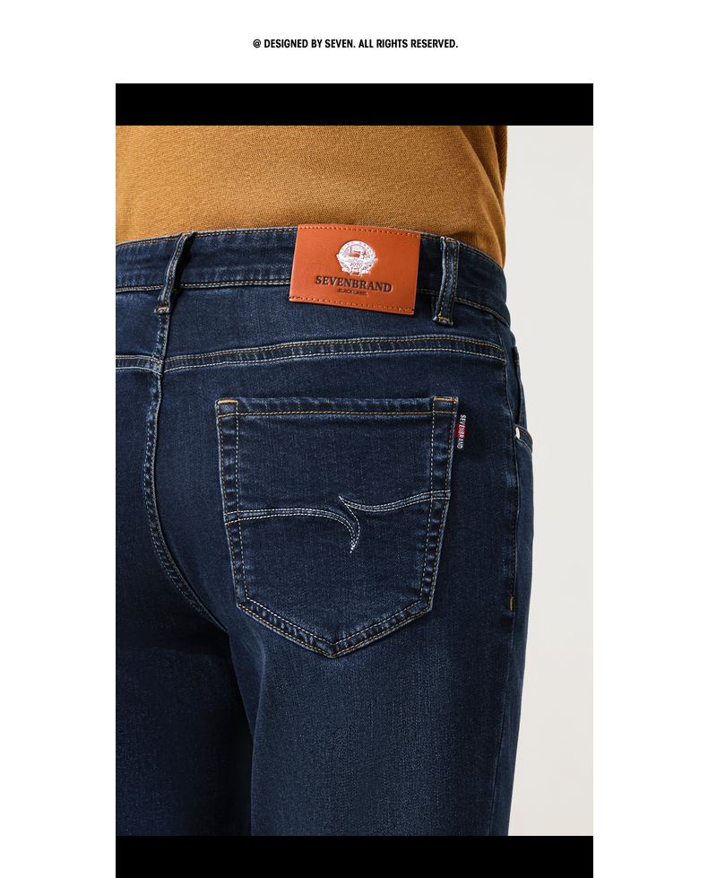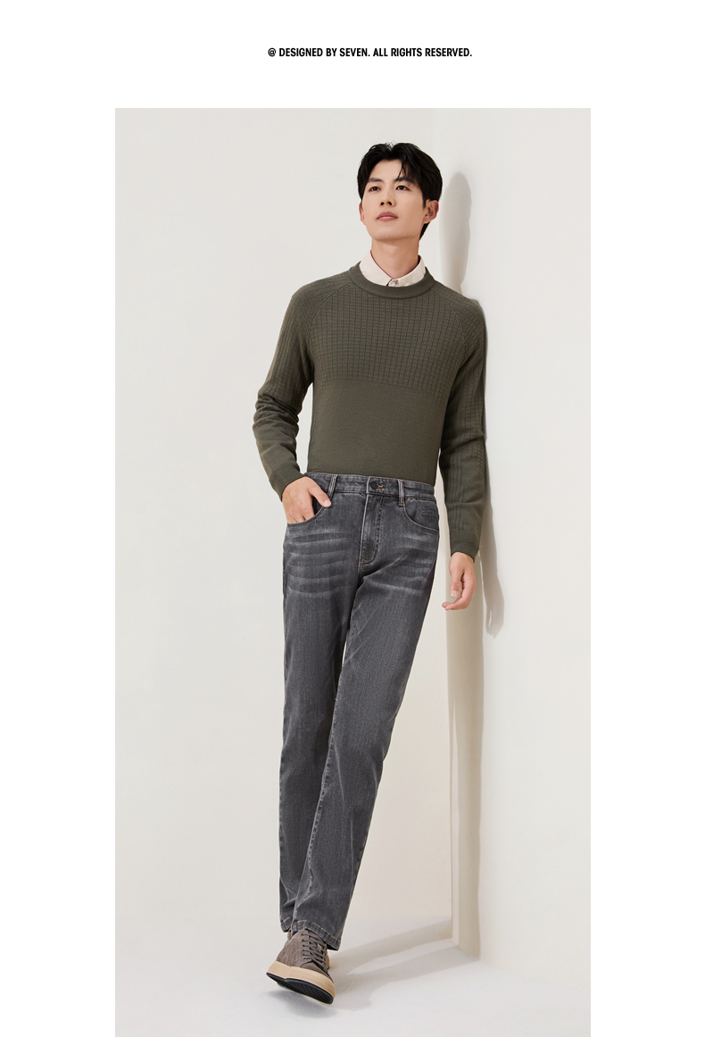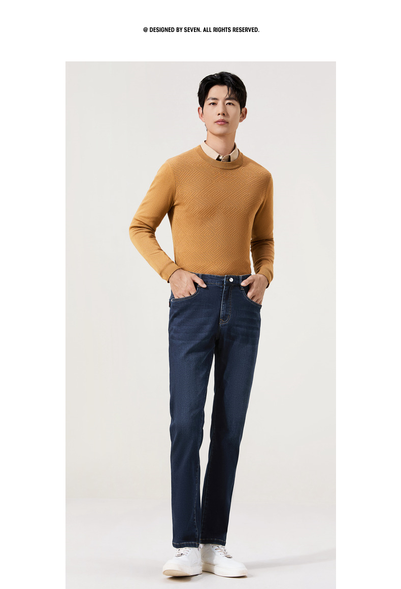 【火山岩】柒牌牛仔长裤秋冬保暖男士弹力中腰直筒裤子休闲男装129H71470