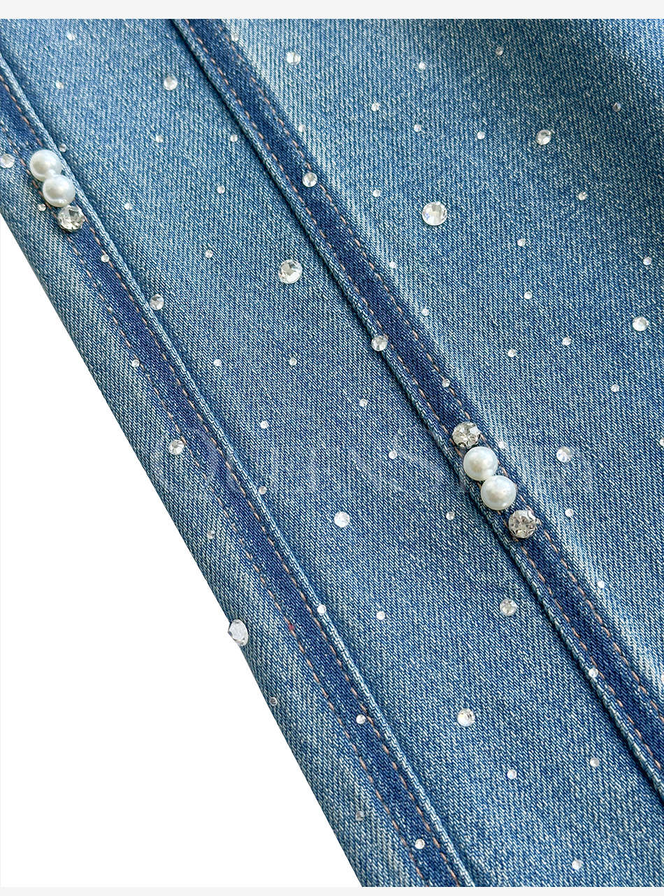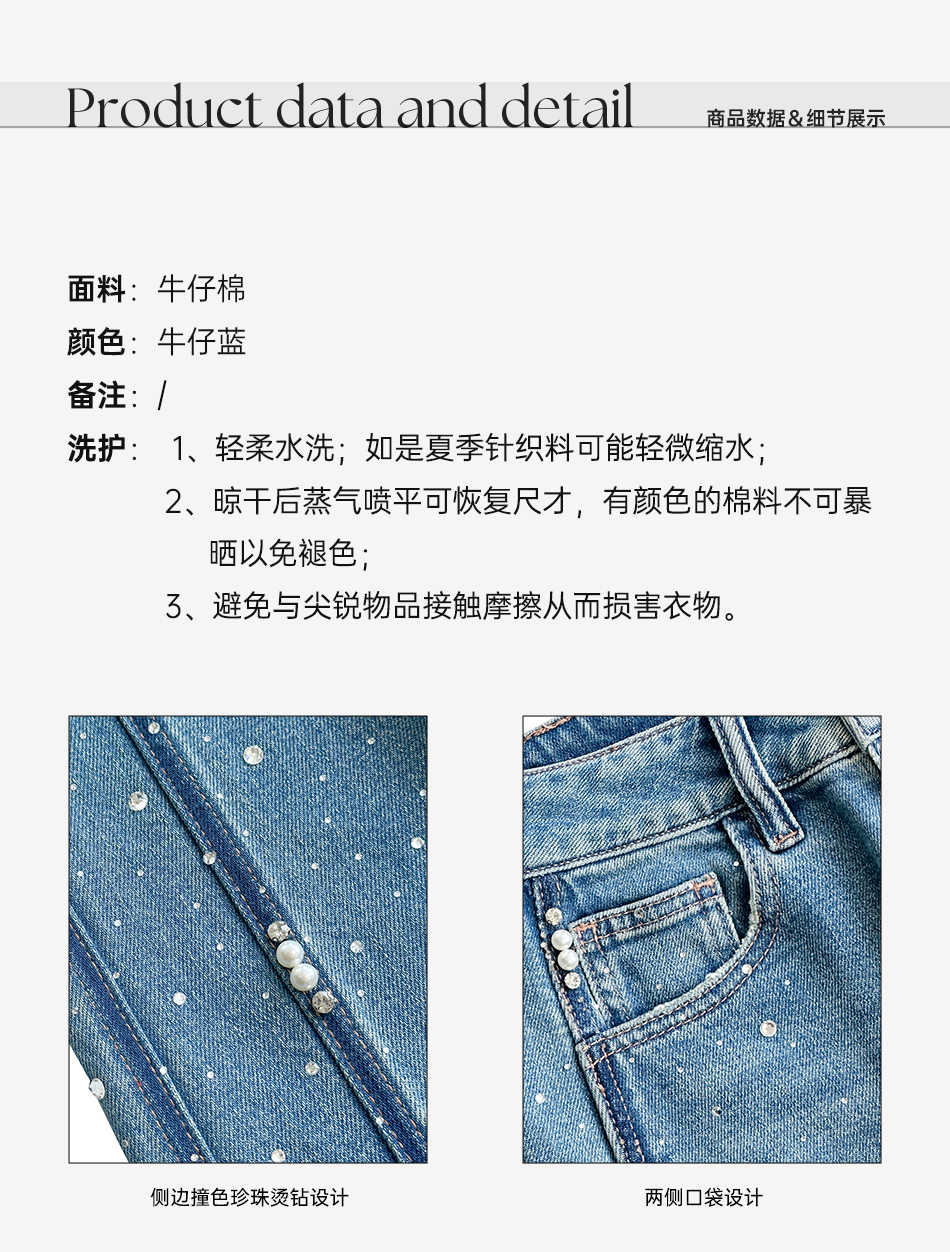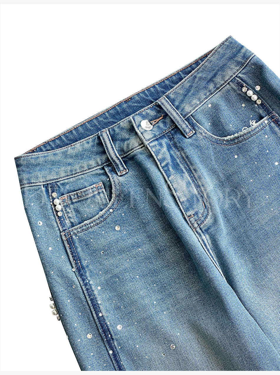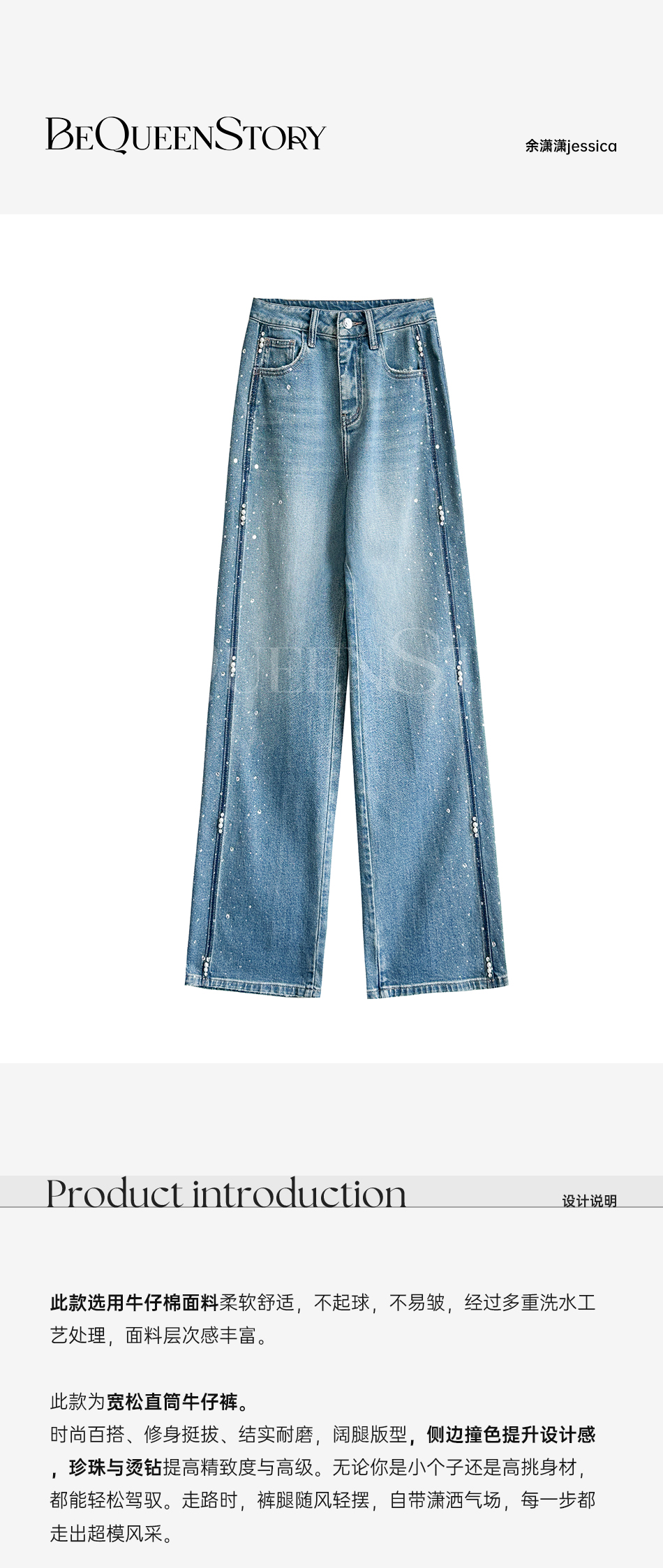 【大货捡漏,不退不换】 【星河轨迹】设计感侧边撞色烫钻珍珠点缀显瘦百搭直筒牛仔裤