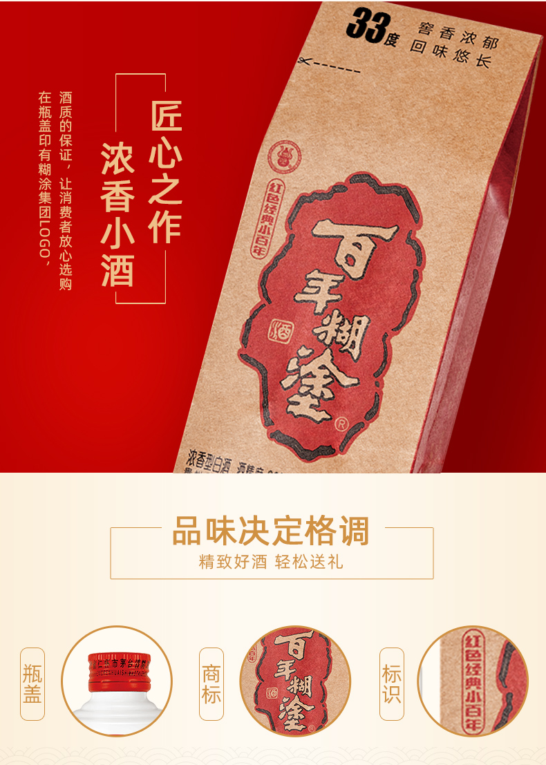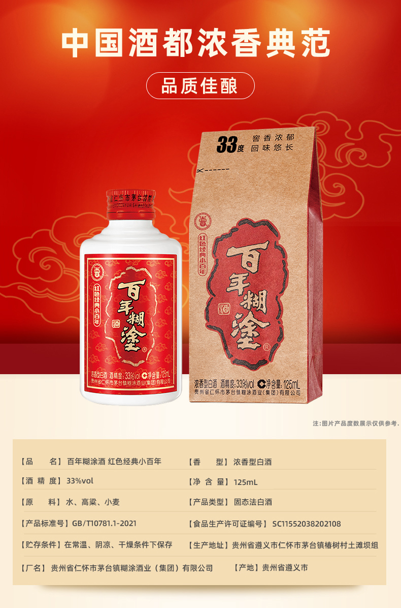 百年糊涂红色经典小百年33度浓香型125mL*24瓶(咨询有礼)