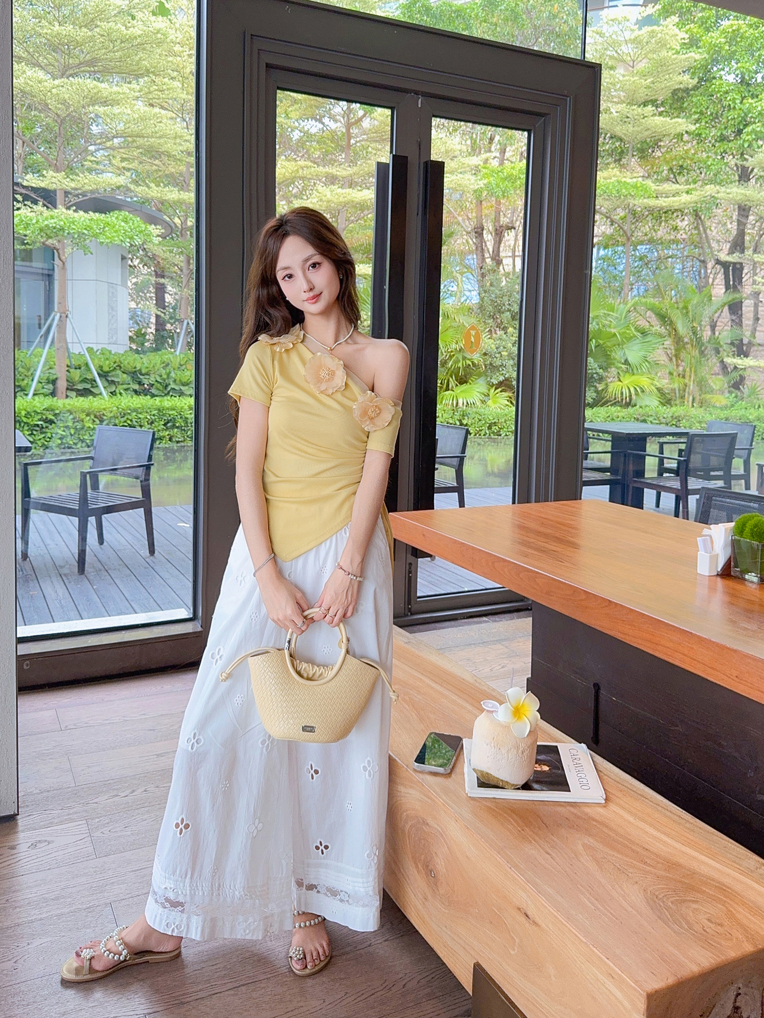 张心子【橘子气泡水】小性感露肩显白气质立体花上衣 U2505039