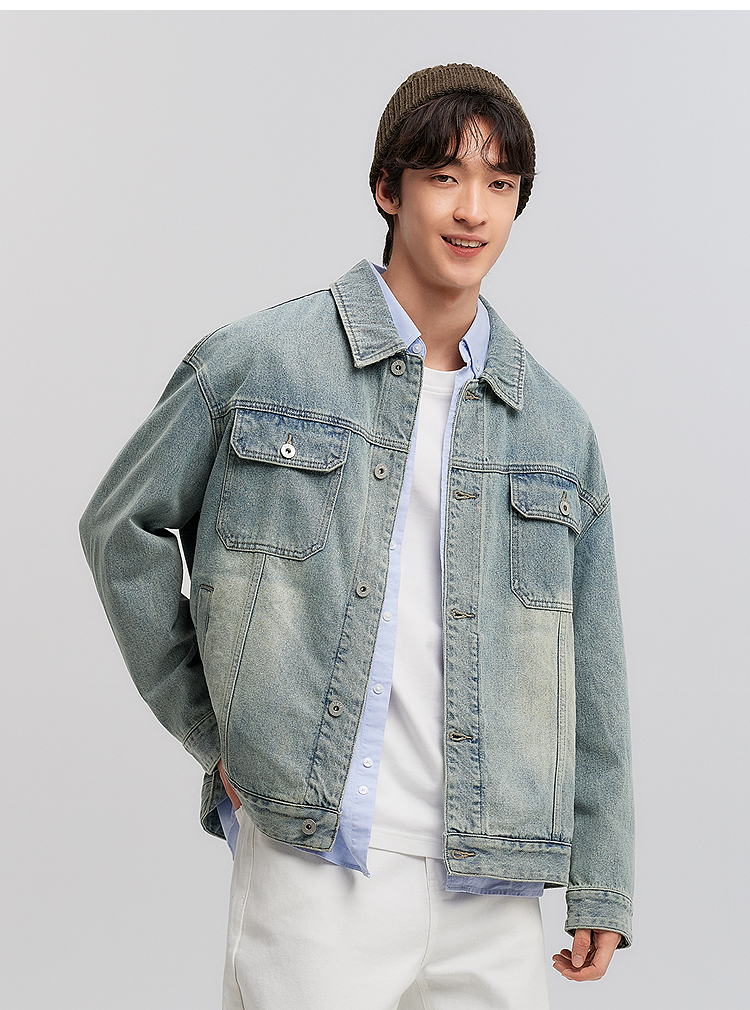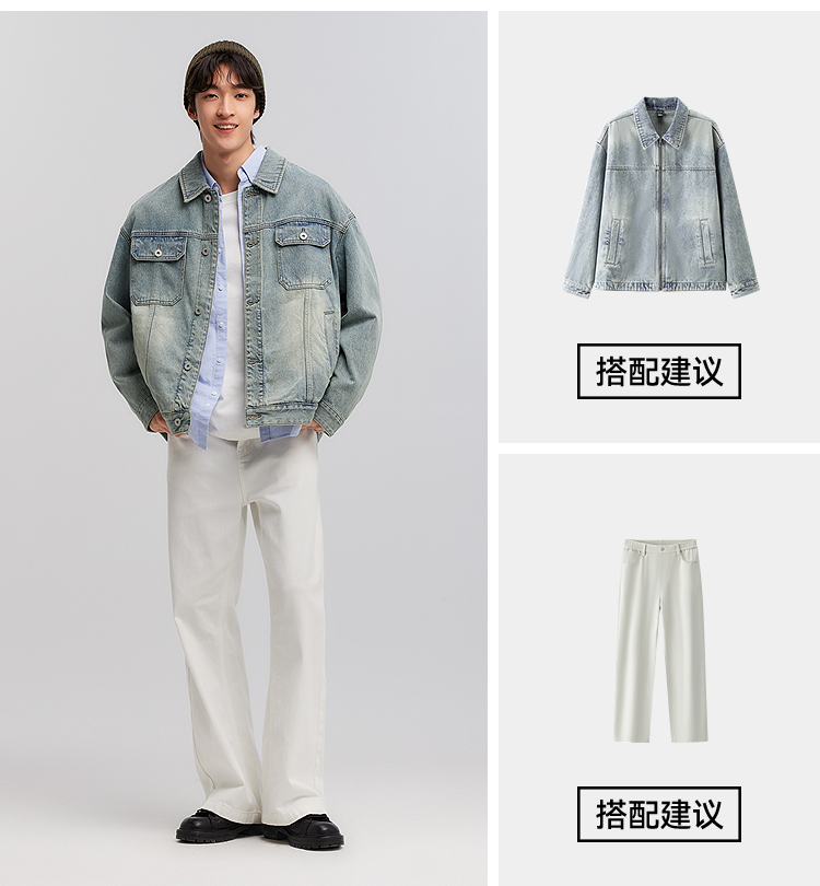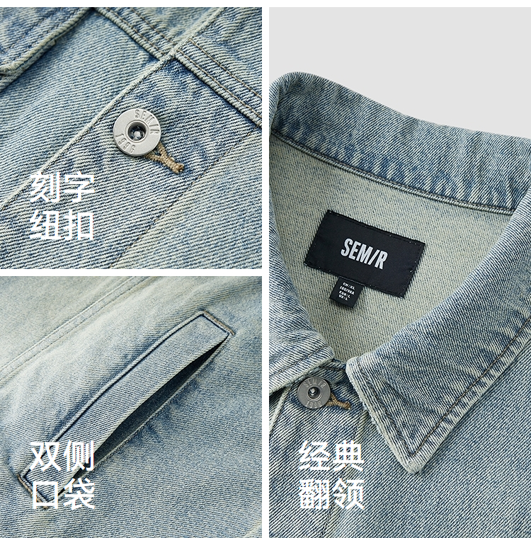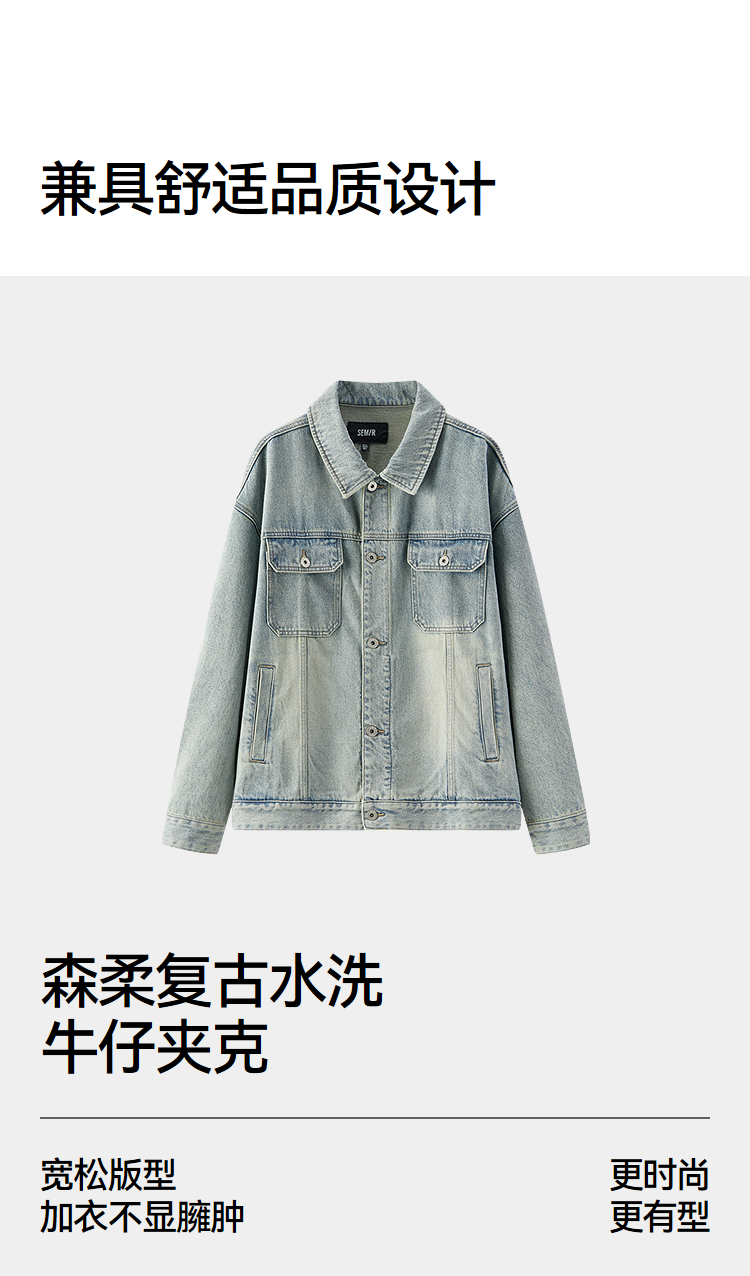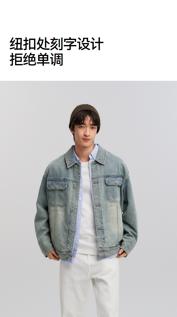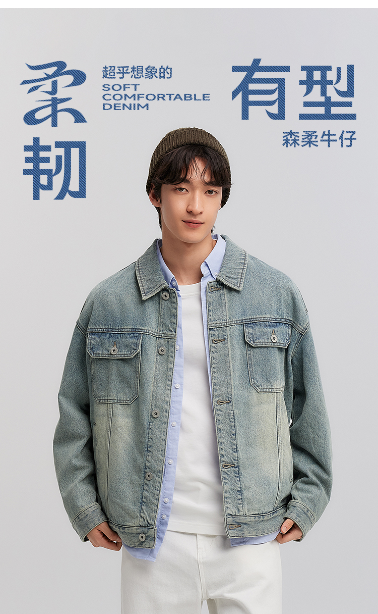 森柔|森马夹克男春季复古工装翻盖口袋外套通勤百搭宽松翻领上衣