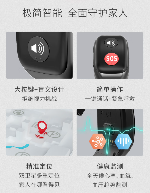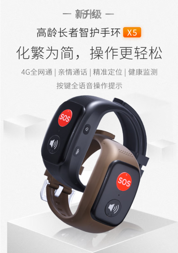 【2022国庆】爱牵挂X5 老人定位电话手环4G三网通智能健康趋势监测血压血氧心率运动计步APP远程跌倒报警一键呼救防走丢失