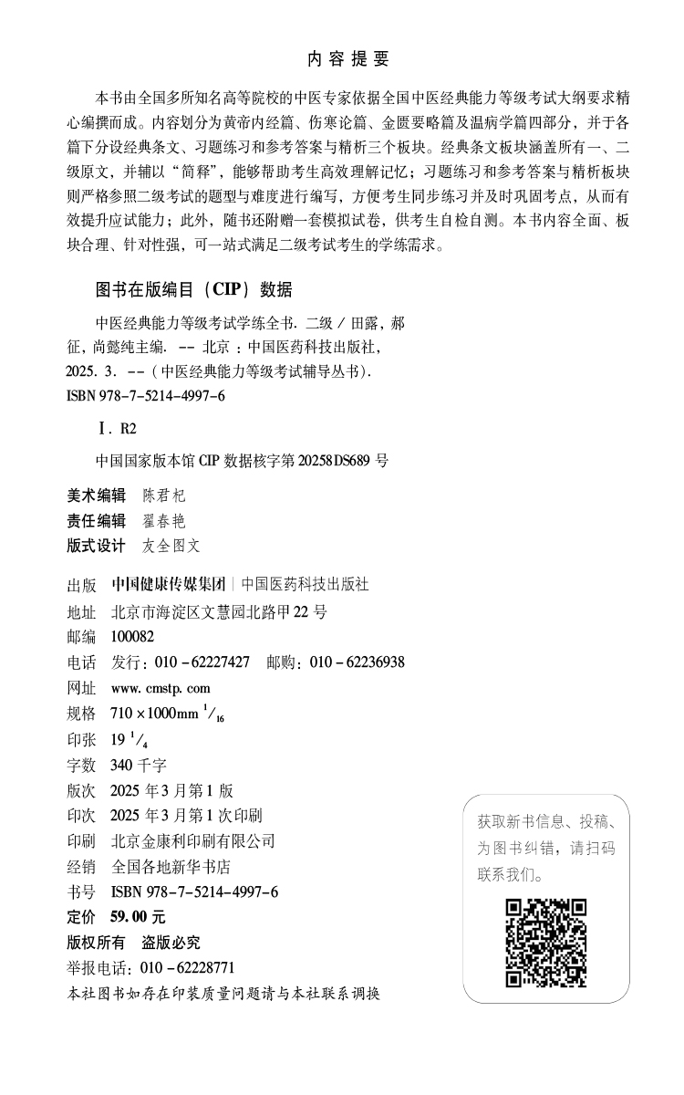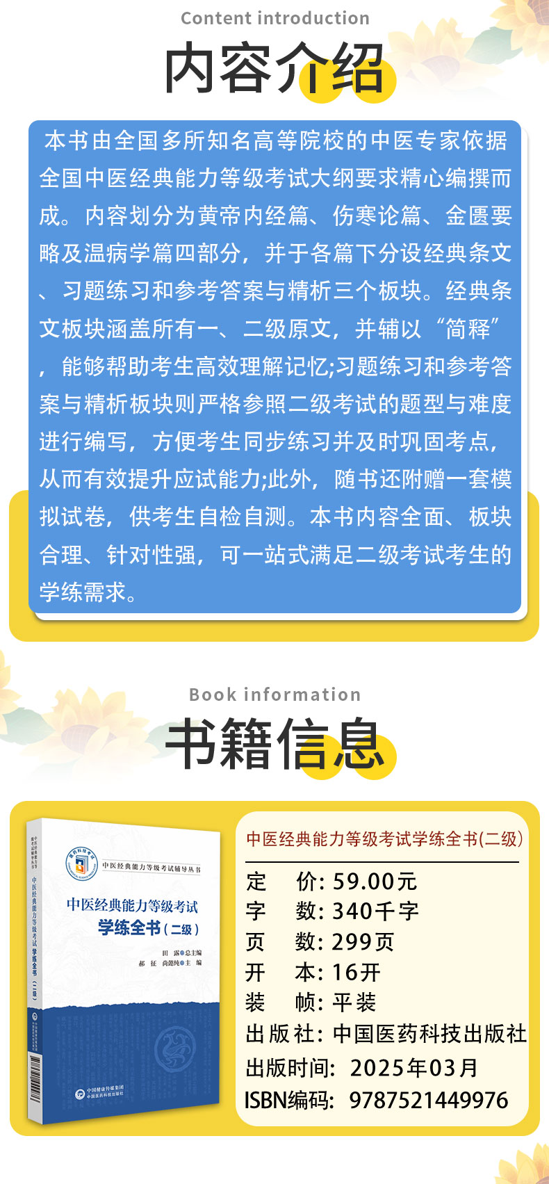 中医经典能力等级考试学练全书(二级) 中医经典能力等级考试辅导丛书 田露 郝征 尚懿纯主编 9787521449976 中国医药科技出版社