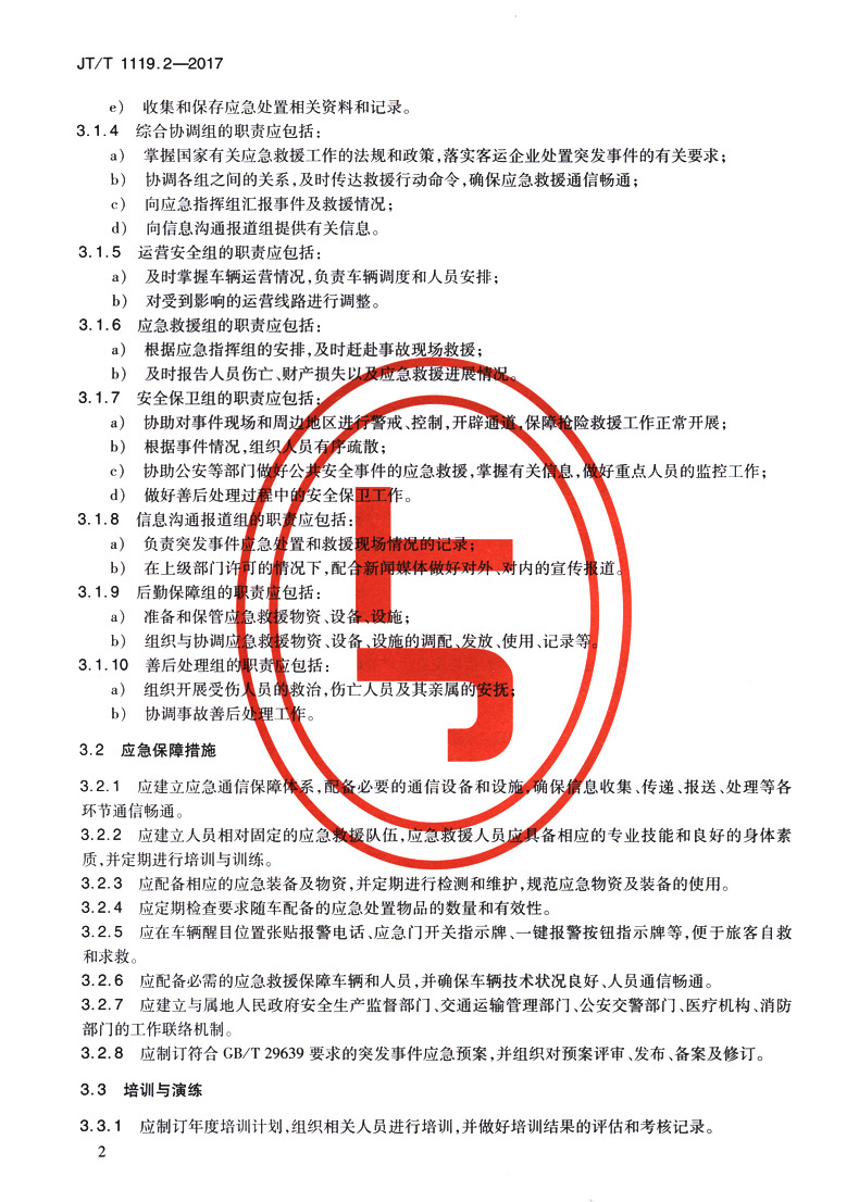 书名:城乡道路客运应急处置规范 第2部分:企业(JT/T 1119.2—2017)