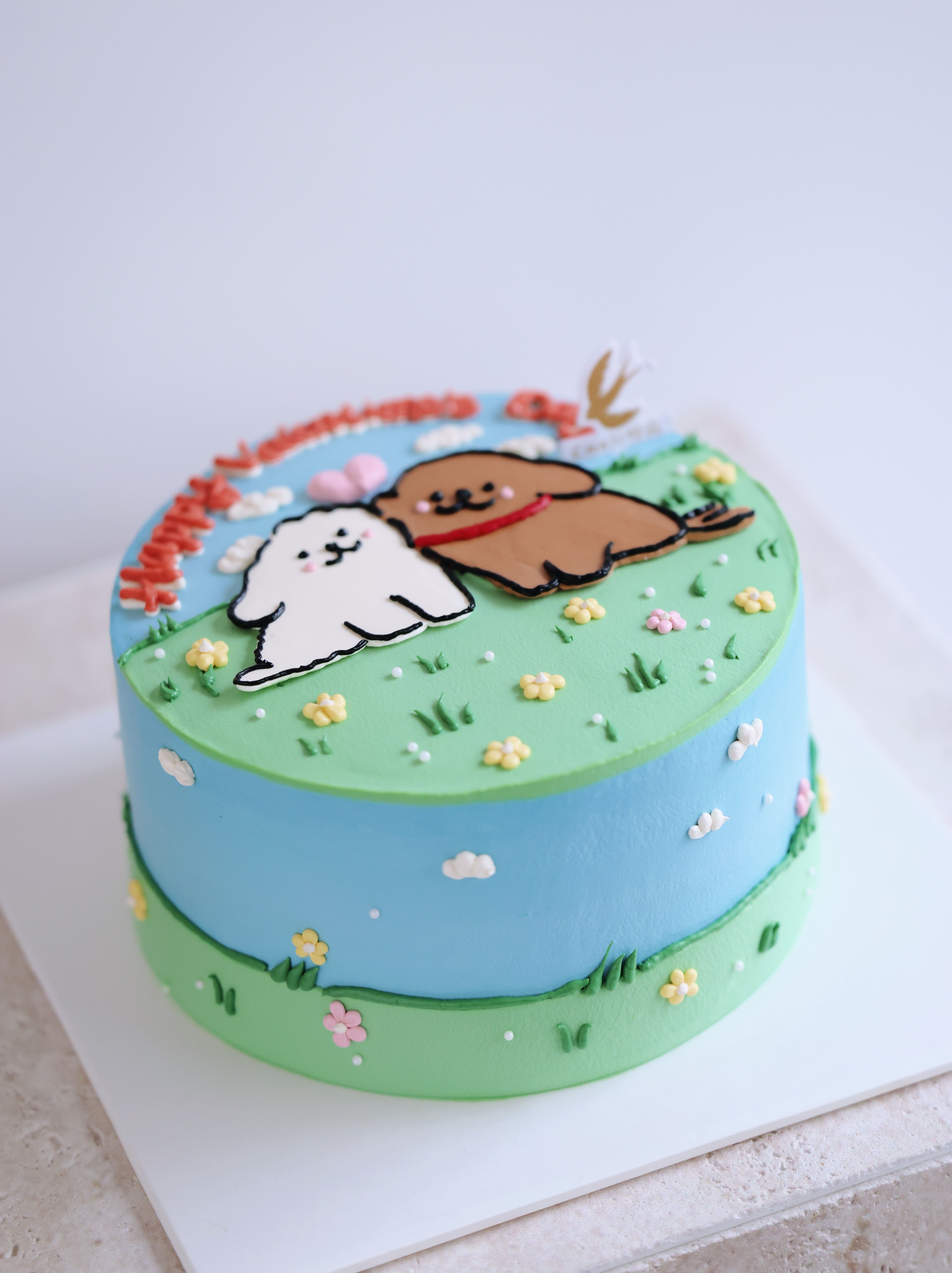 【客定】贴贴线条小狗蛋糕0064