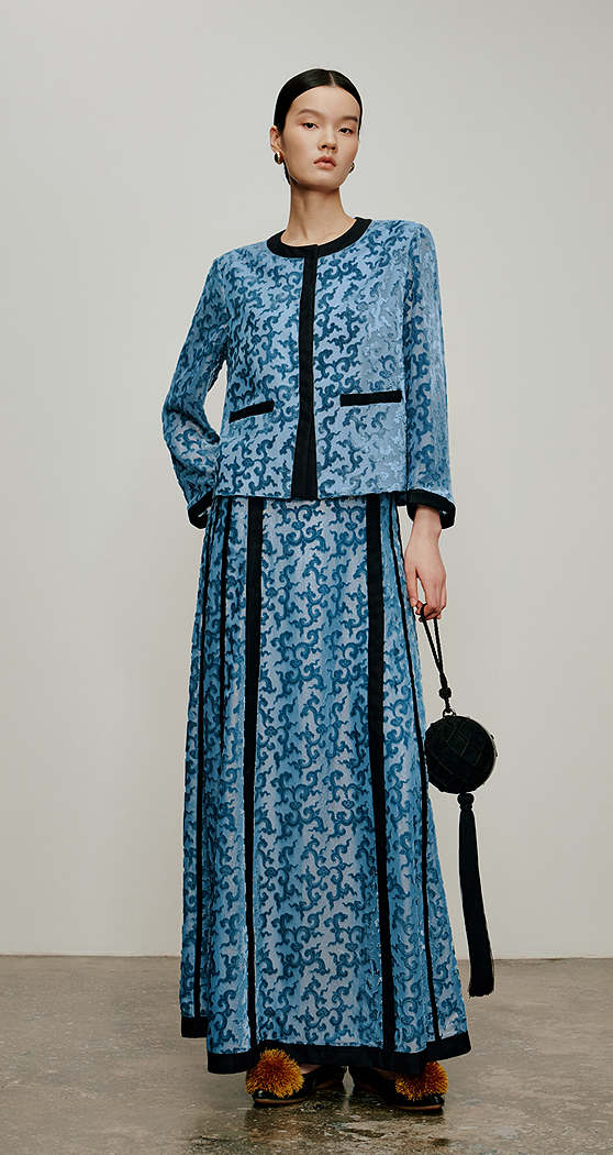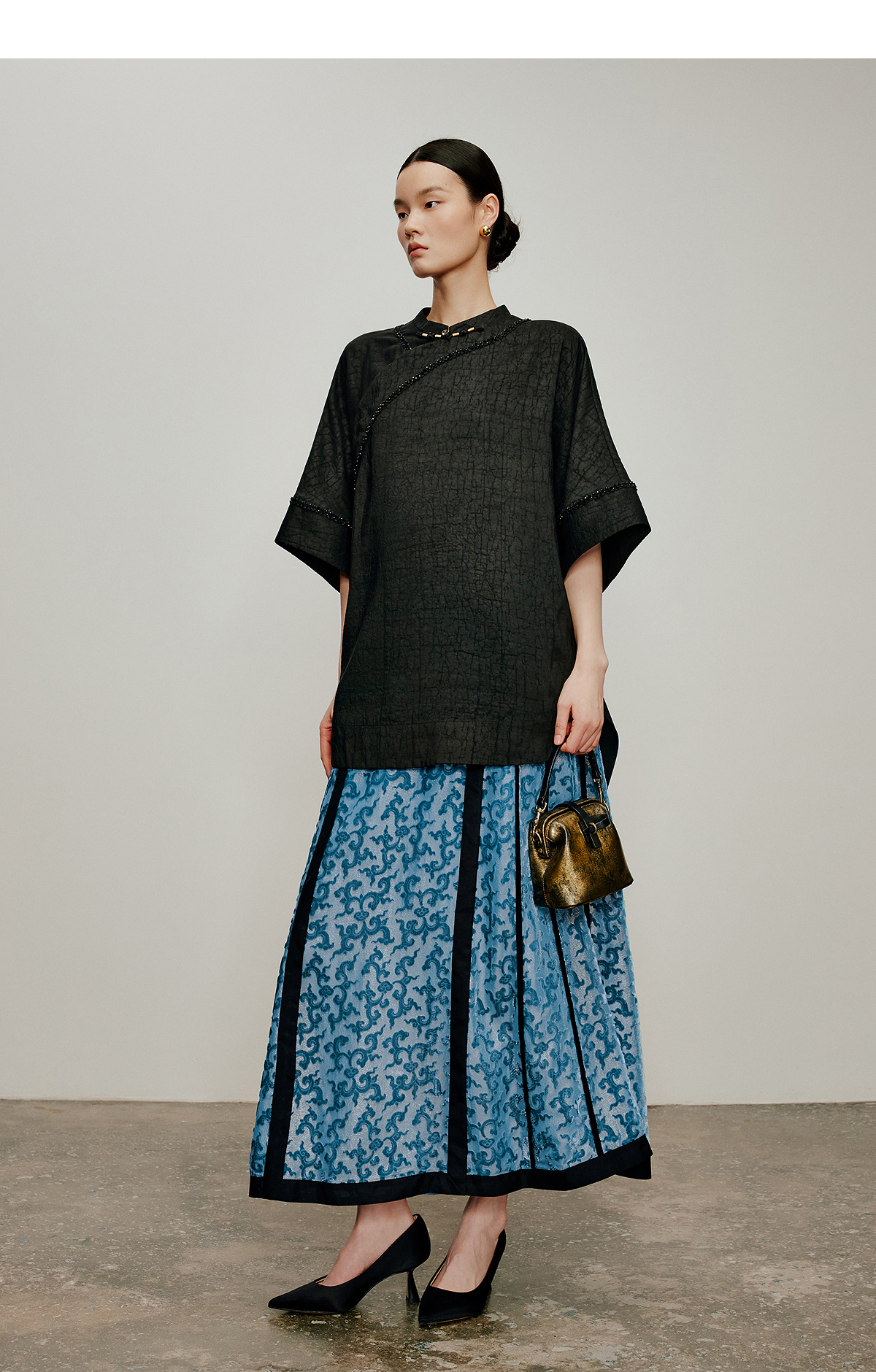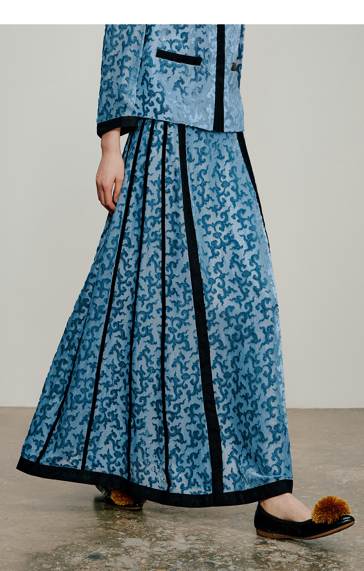 【林栖设计小店】流云漫漫|金丝如意烧花国风2026夏新款马面半身裙