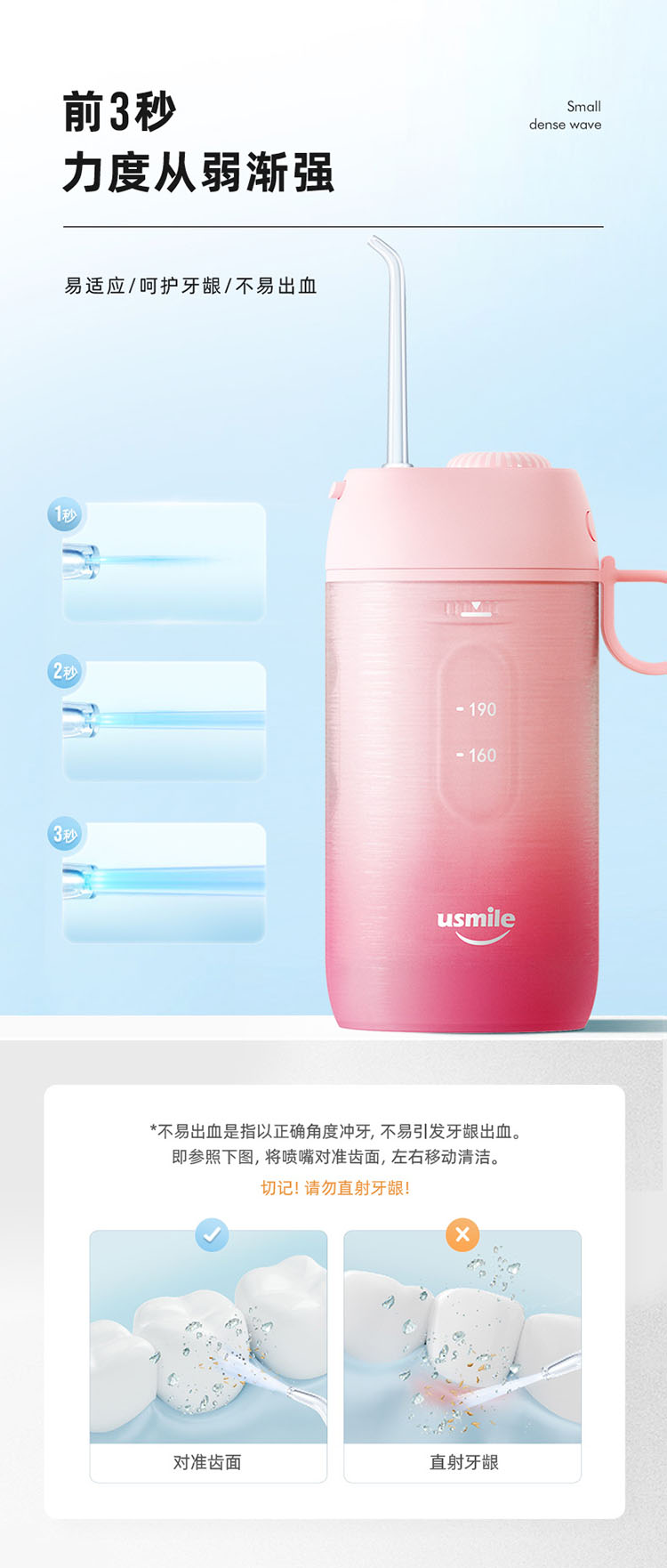 usmile密浪冲牙器C1冰蓝【赠usmile牙线*1盒】