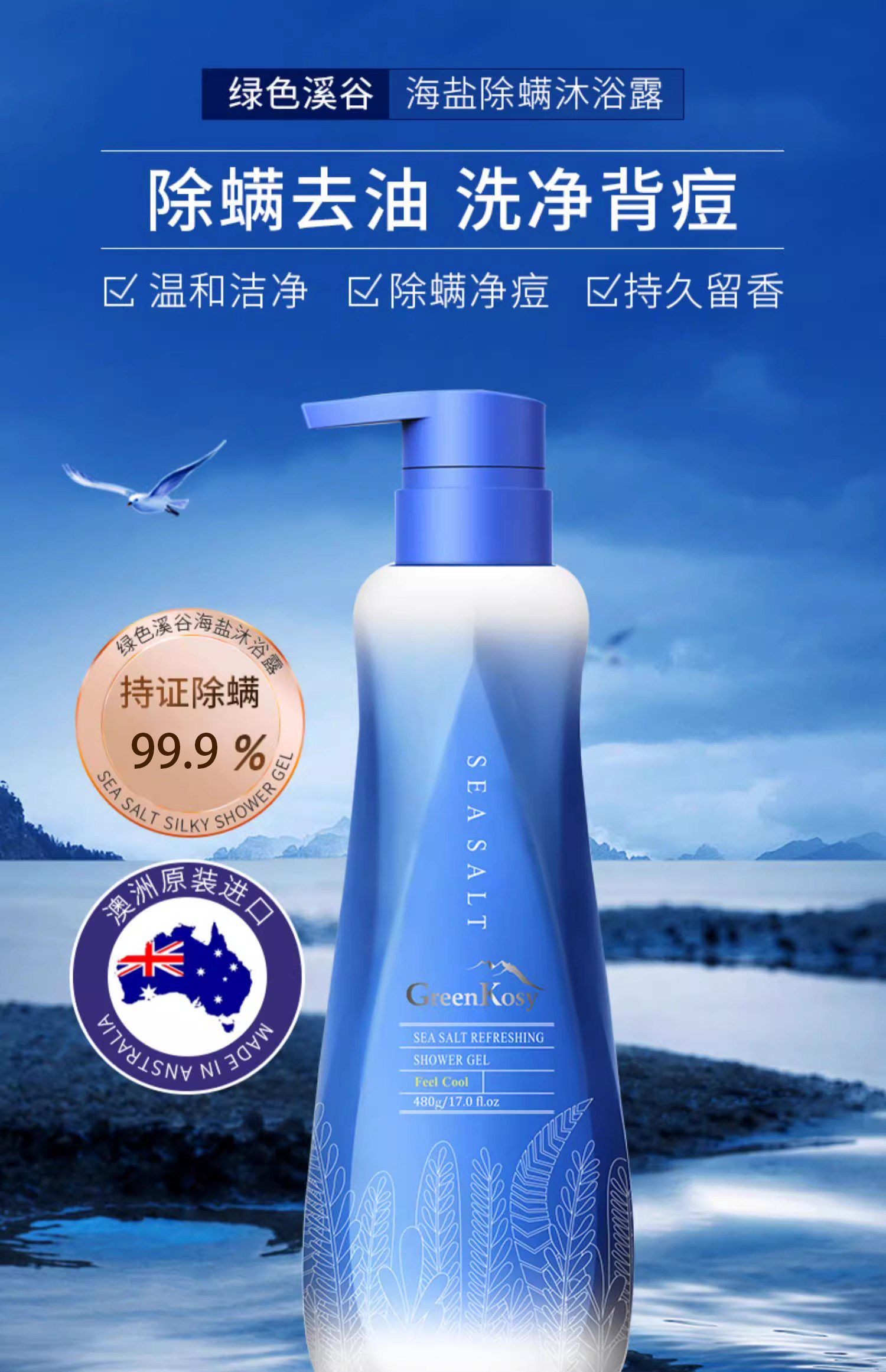 【买一送一】绿色溪谷海盐净肤清洁沐浴露480ml