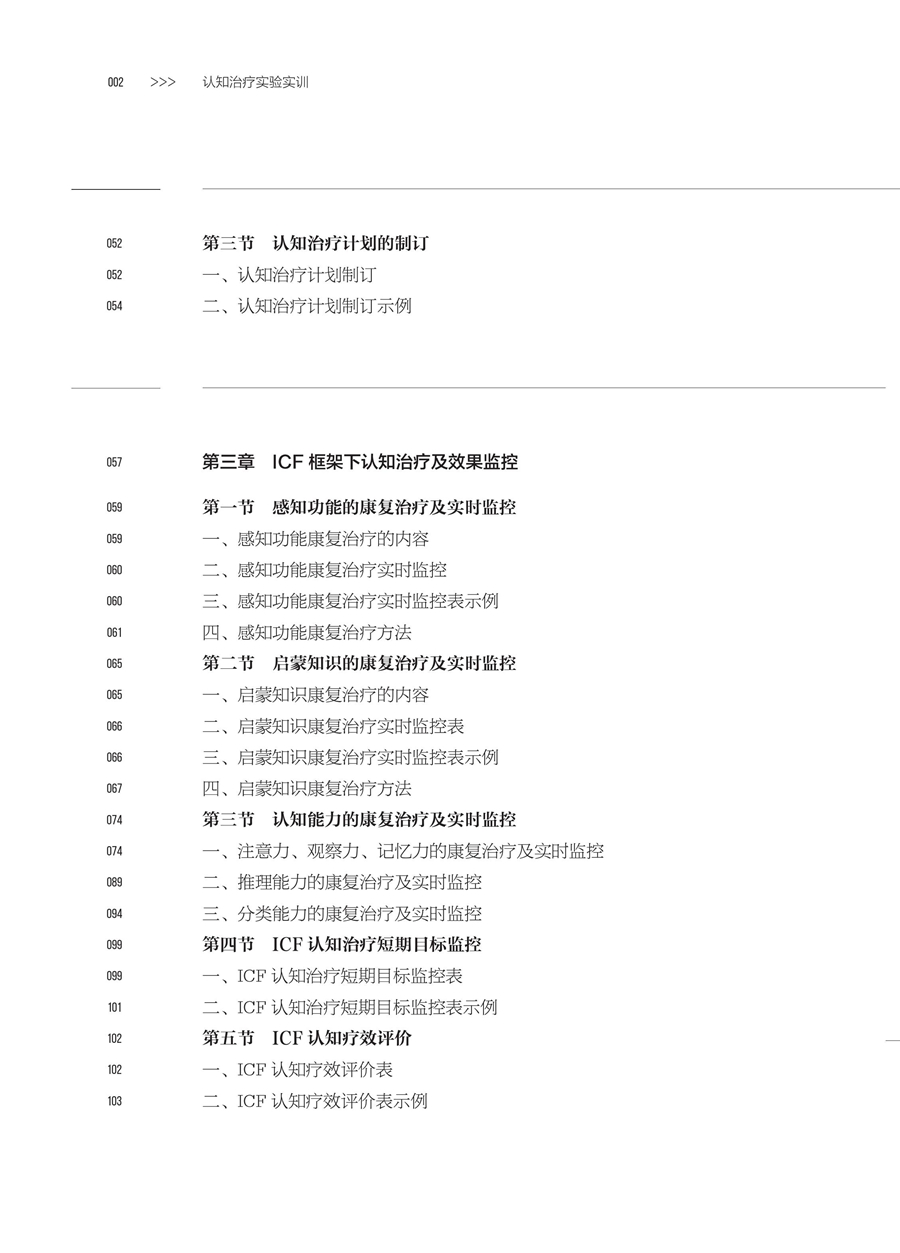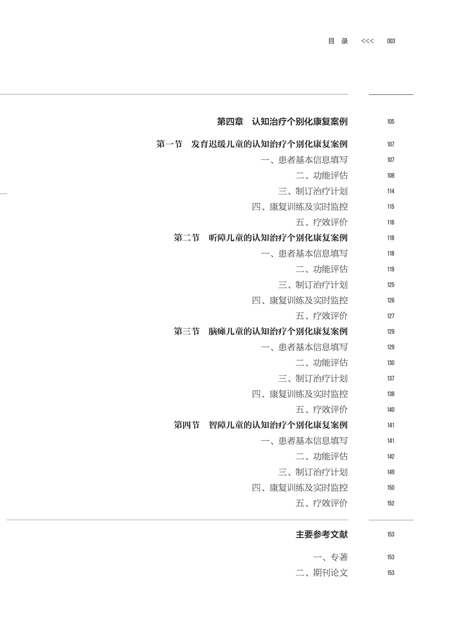本书重点介绍了如何运用标准化的流程和工具进行《国际功能、残疾和健康分类》框架下的认知功能评估、认知康复治疗及效果监控。书中附有大量表格工具,康复师或家长可根据表格列出的康复训练项目、康复目标与内容,以及提供的康复建议,对儿童做出准确的判断,并实现相应的康复目标。本书适用于教育康复学专业、听力与言语康复学专业、康复治疗学专业、特殊教育学专业等本科和研究生教学,也可供康复医师、康复治疗师、特殊学校教师以及临床医师(康复科、儿科、儿保科、耳鼻咽喉科等)、护士等阅读参考。