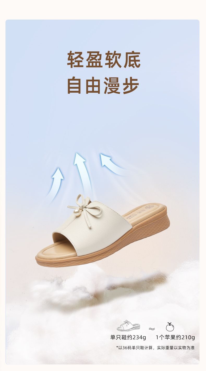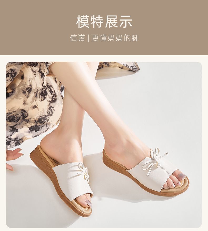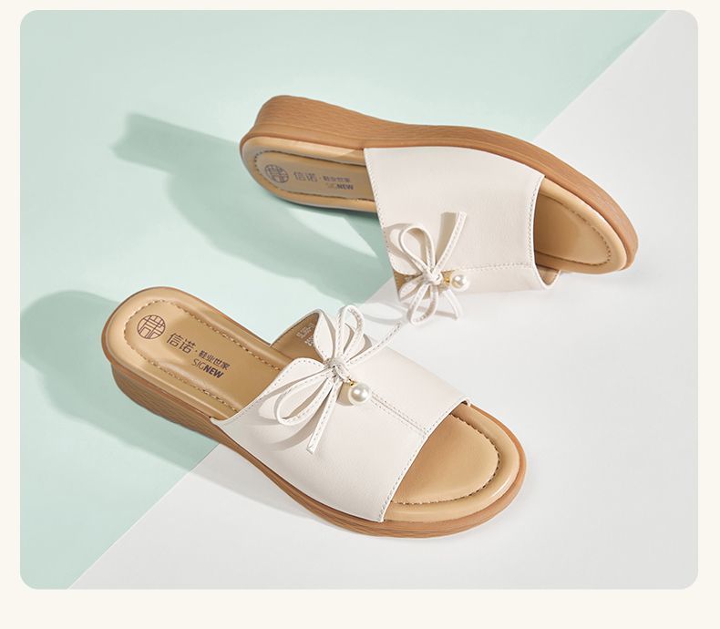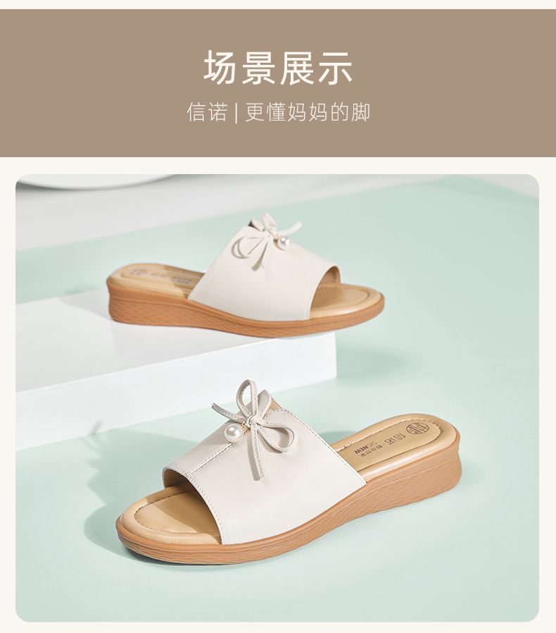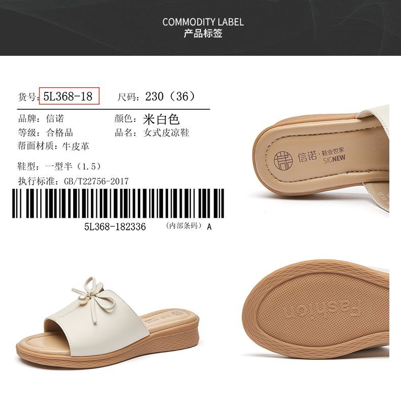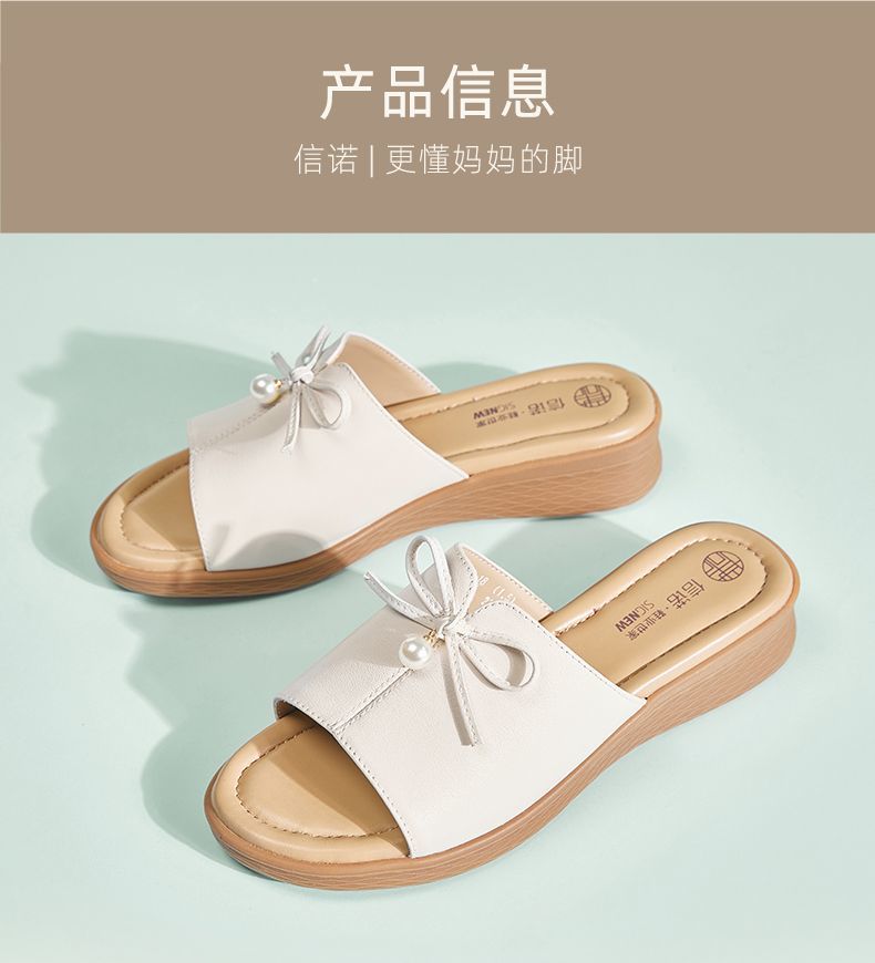 信诺妈妈一字拖女士真皮头层牛皮沙滩鞋凉拖鞋女外穿夏季新款5L368-18