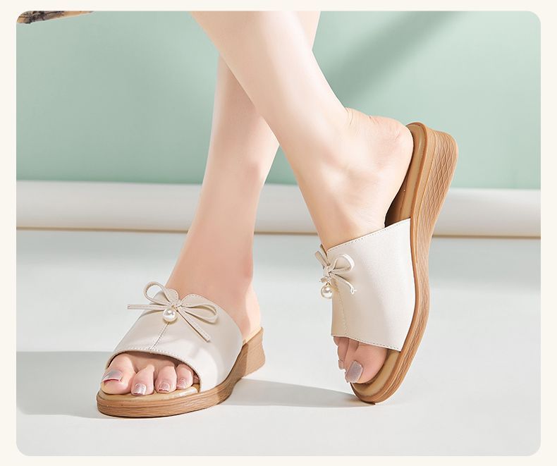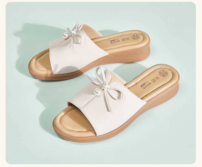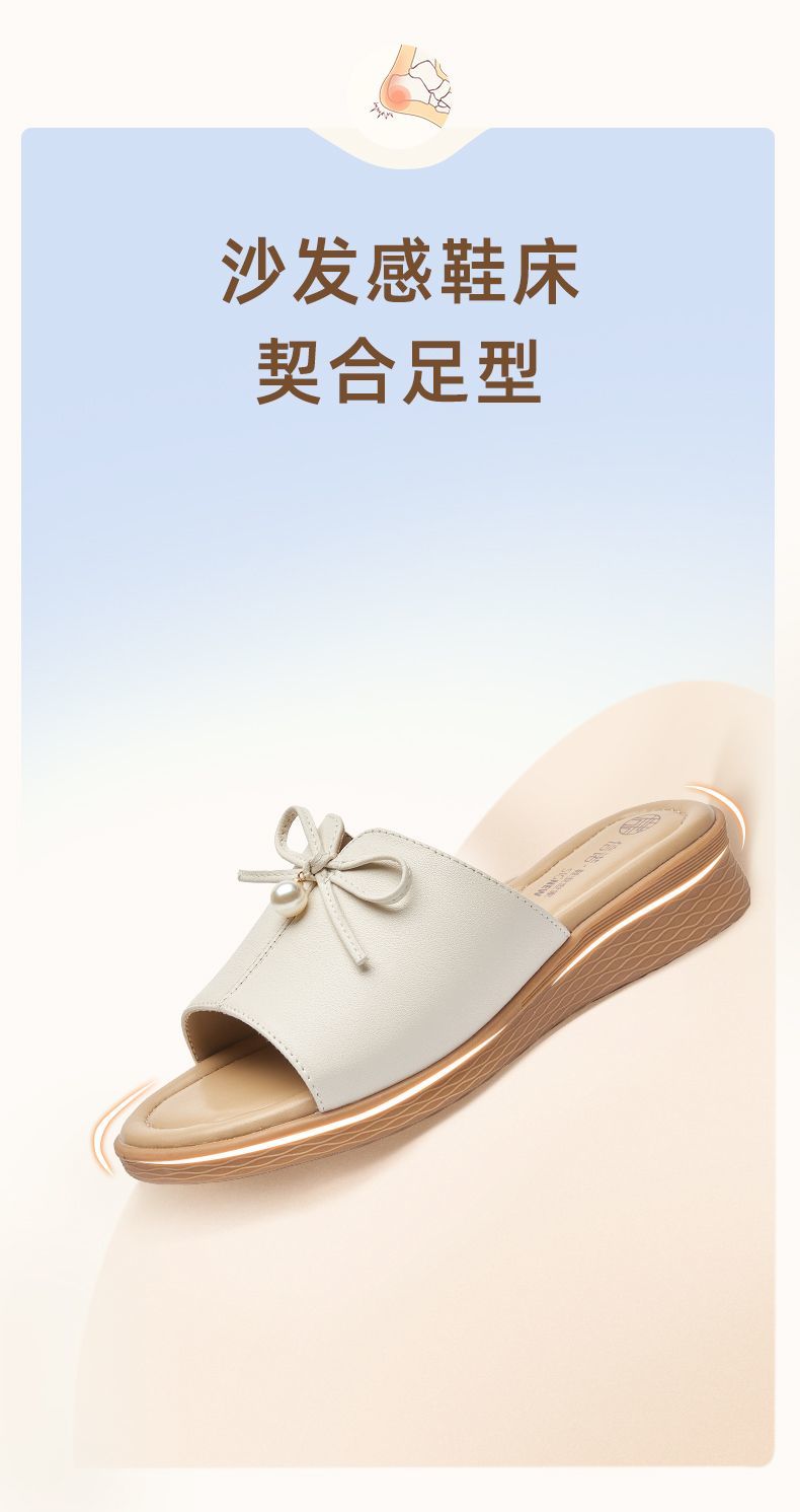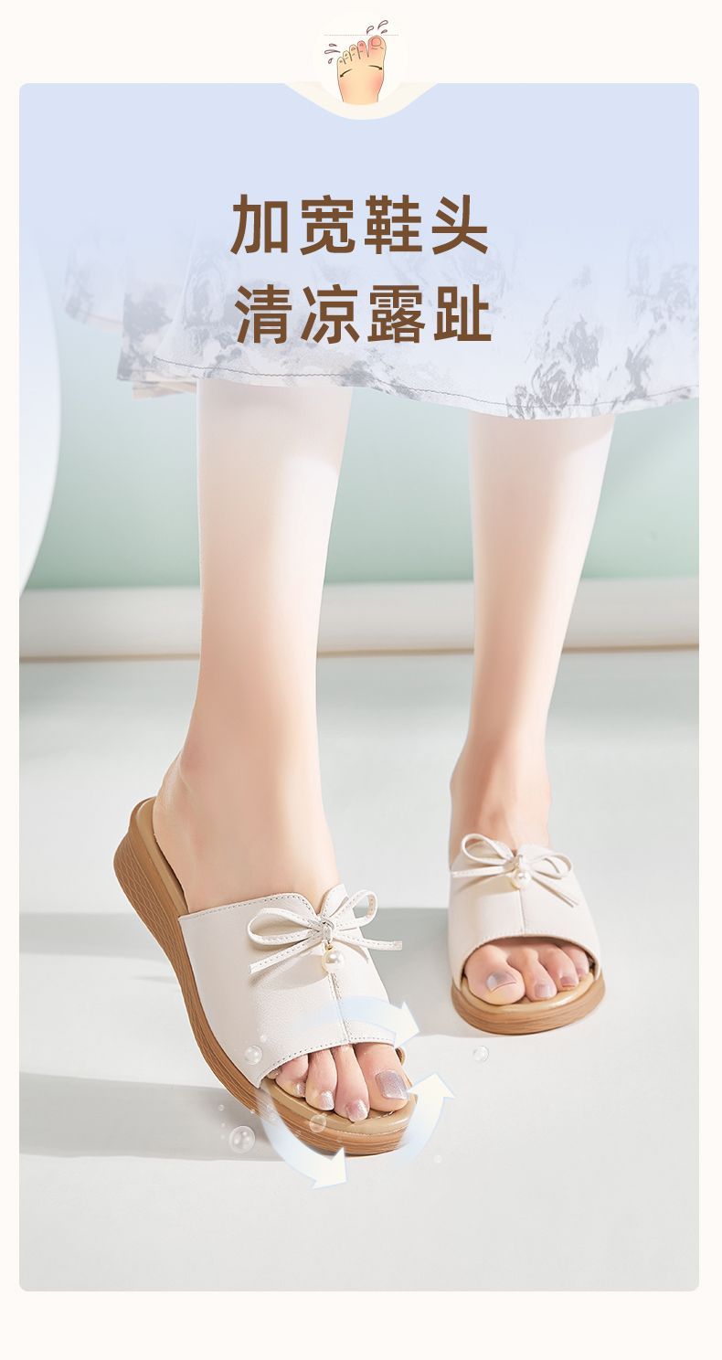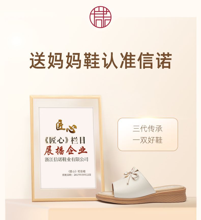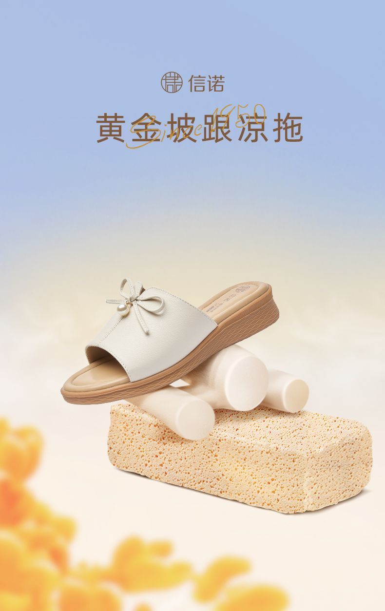 信诺妈妈一字拖女士真皮头层牛皮沙滩鞋凉拖鞋女外穿夏季新款5L368-18