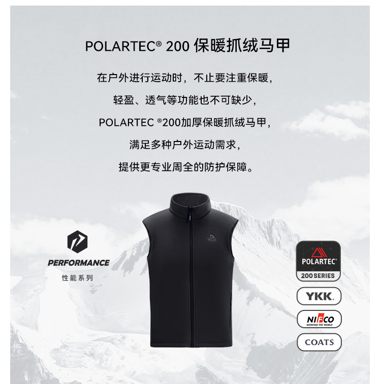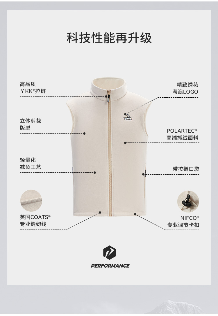 【P系列】伯希和户外Polartec200抓绒马甲新款男轻量运动无袖外套