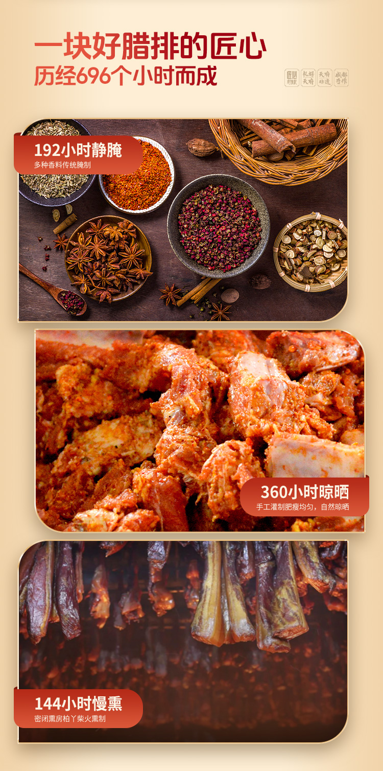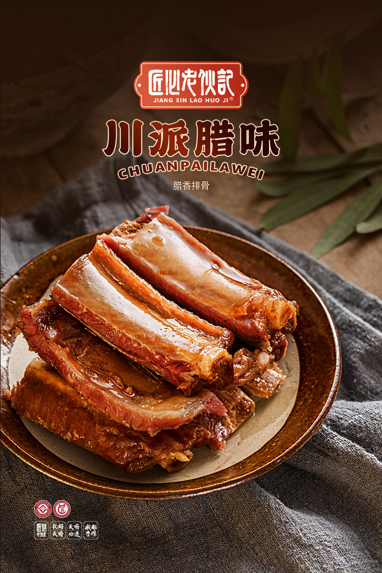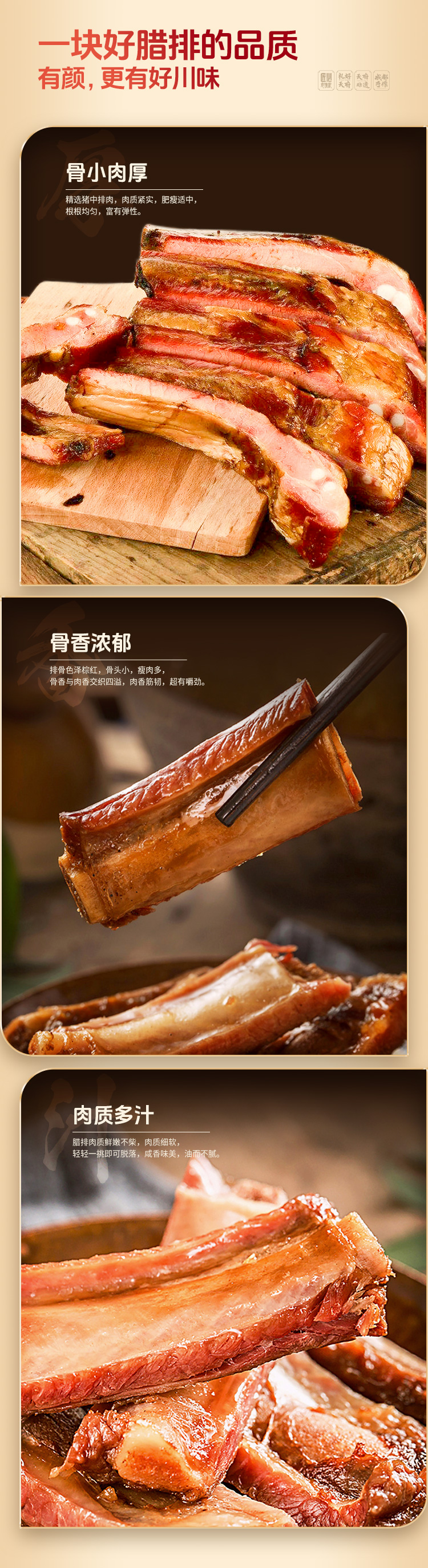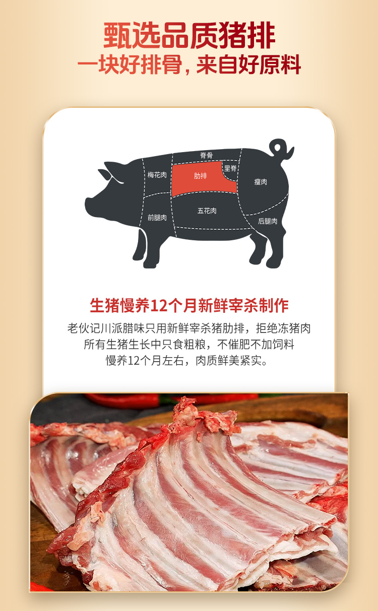 【非遗腊排骨】老伙记非遗美食正宗四川腊味 传统手工柏树枝熏腊香排骨 精选猪肋排 无大骨腊味