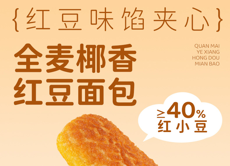 【麦椰香红豆面包,每口都是享受全】办公小点赶走小困小饿,松软面包包裹红豆味馅料,0反式脂肪酸,醇香可口,健康早餐营养休闲食品解馋零食小吃饱腹QQ