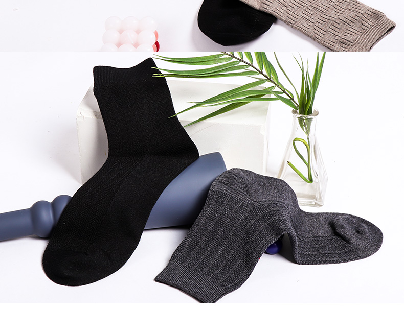 5双69.5元 春秋季男士冬季平纹中邦细抽条松口长邦棉袜抗菌男袜