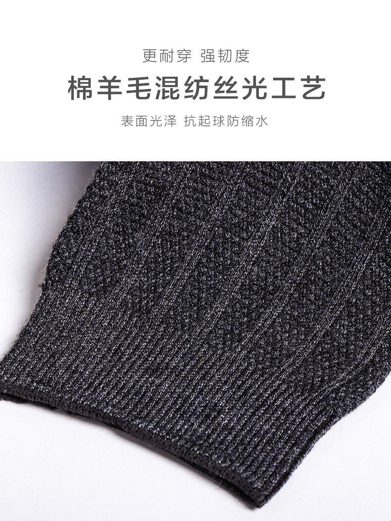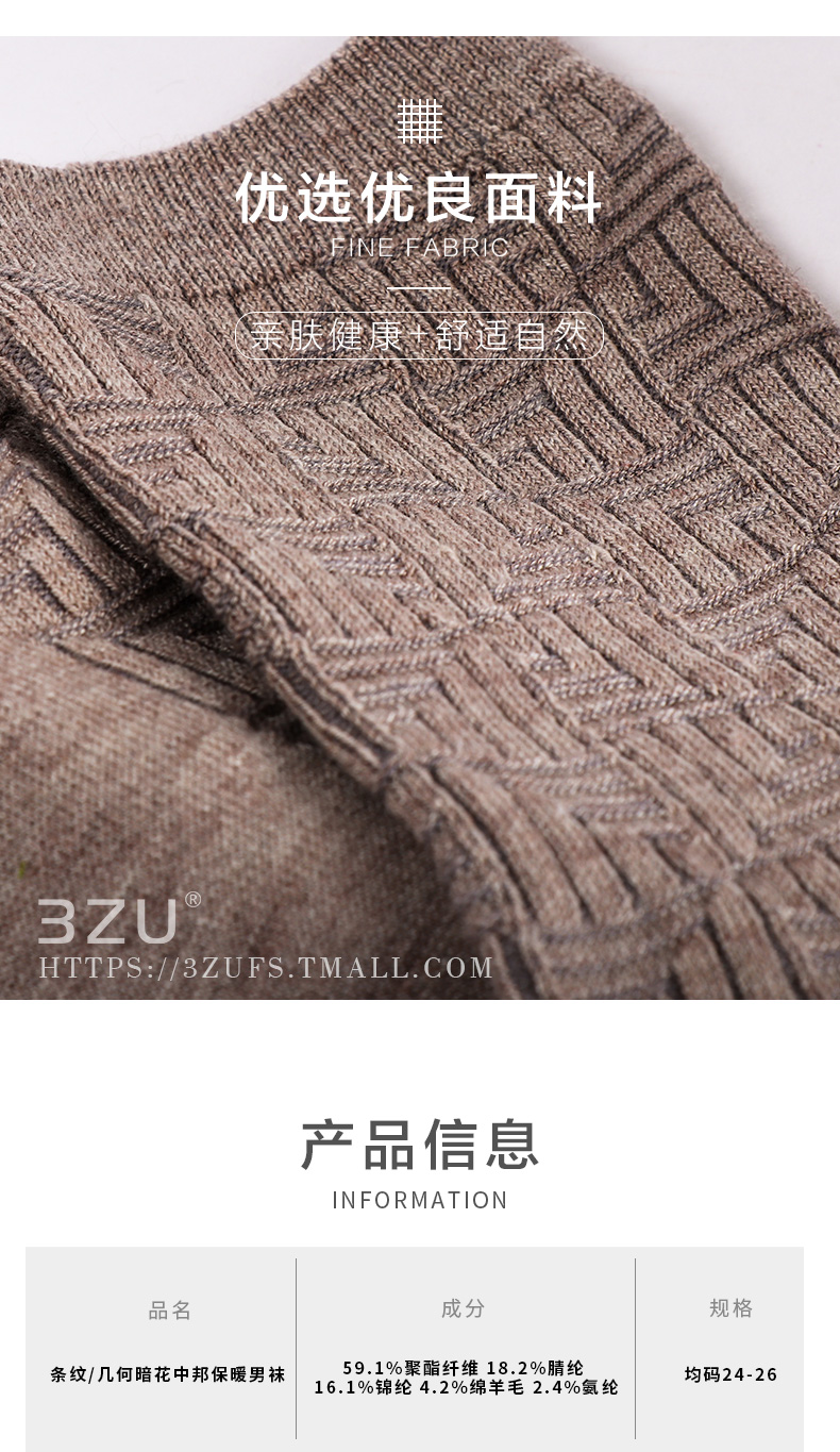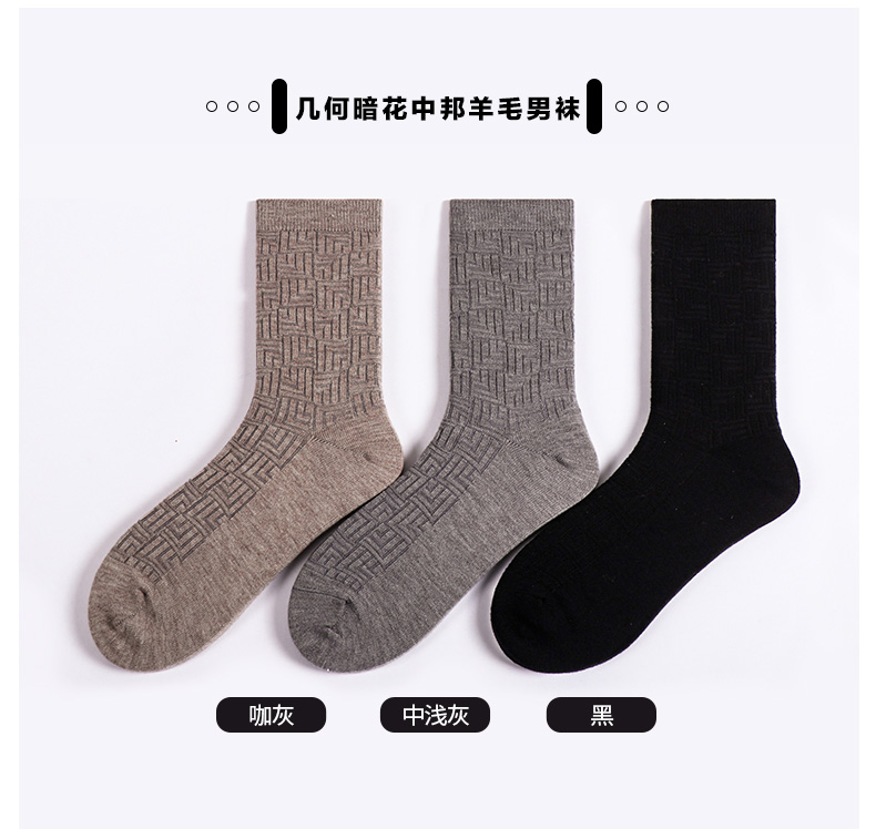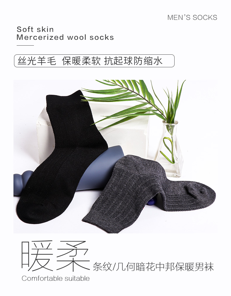【任选6双99.5】春季男款秋冬中筒丝光羊毛冬季保暖条纹几何暗花中邦保暖男袜子