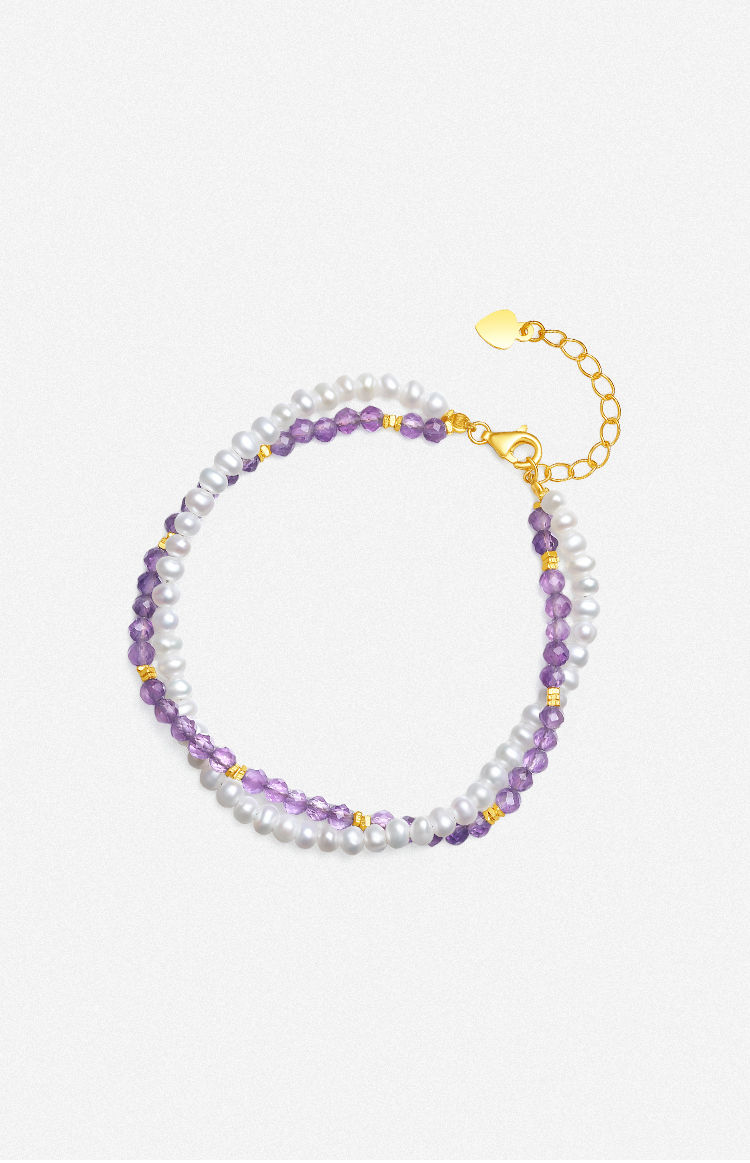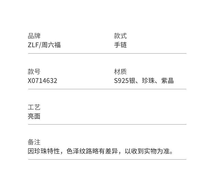 周六福珍珠手链S925银紫水晶珍珠手饰优雅国风感送女友礼物