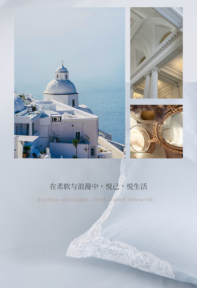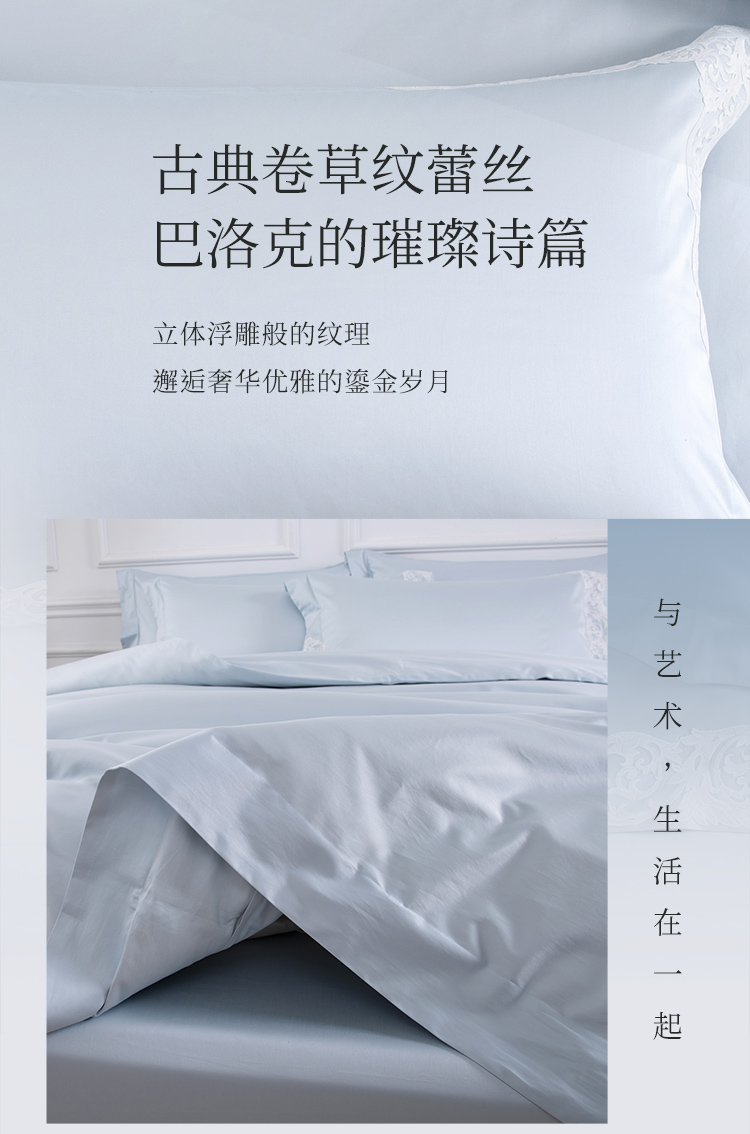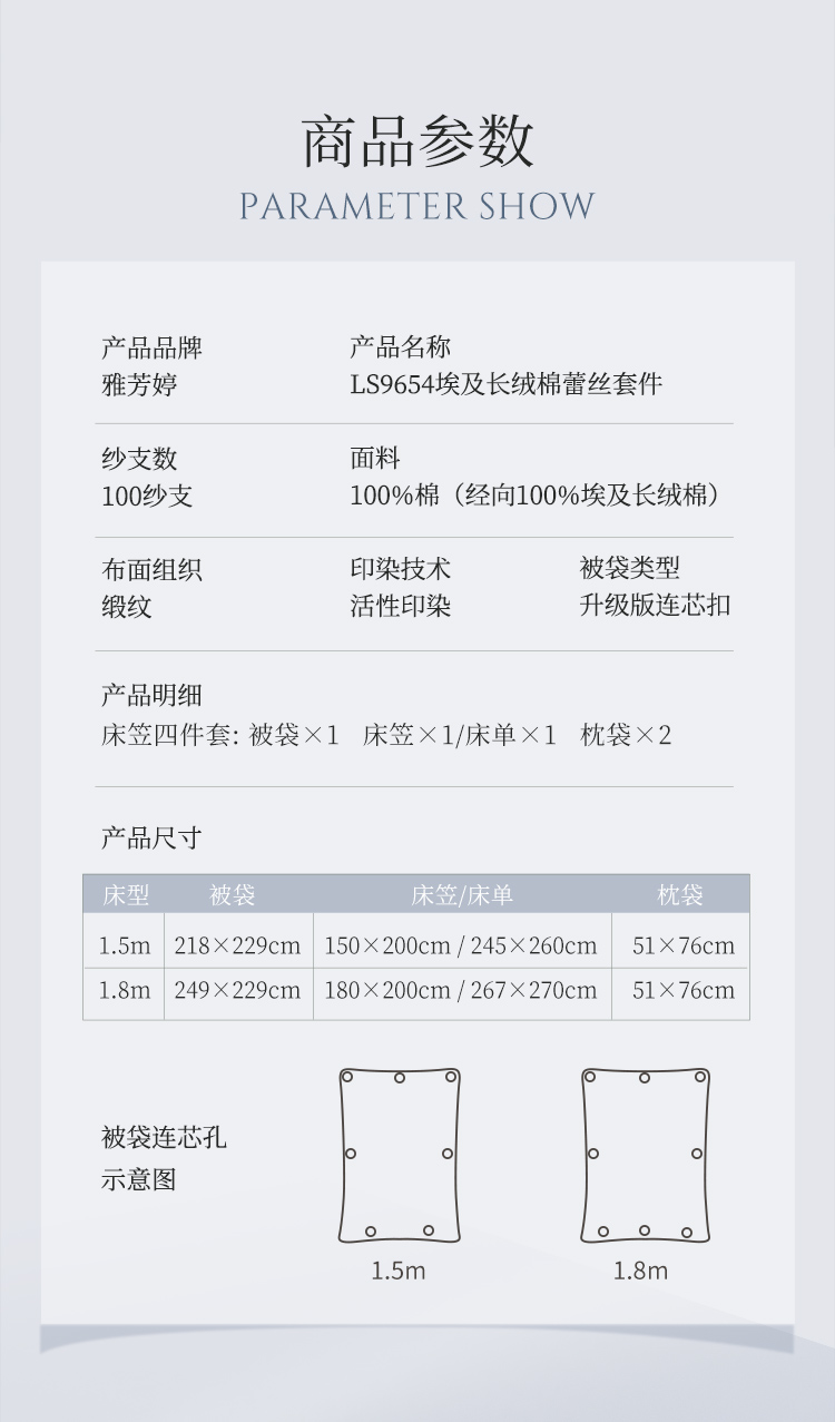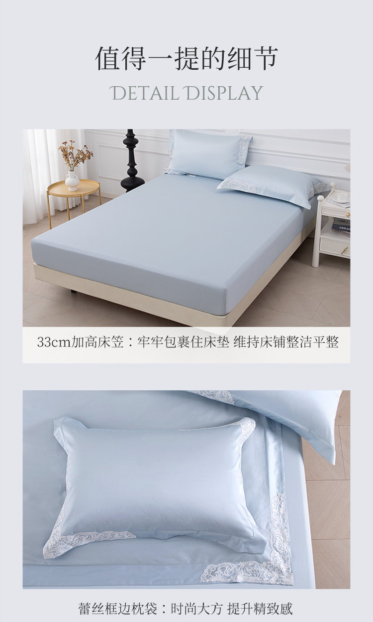 2026年新款雅芳婷100S埃及长绒棉四件套轻奢全棉蕾丝被套床笠套件