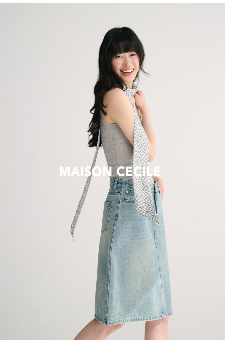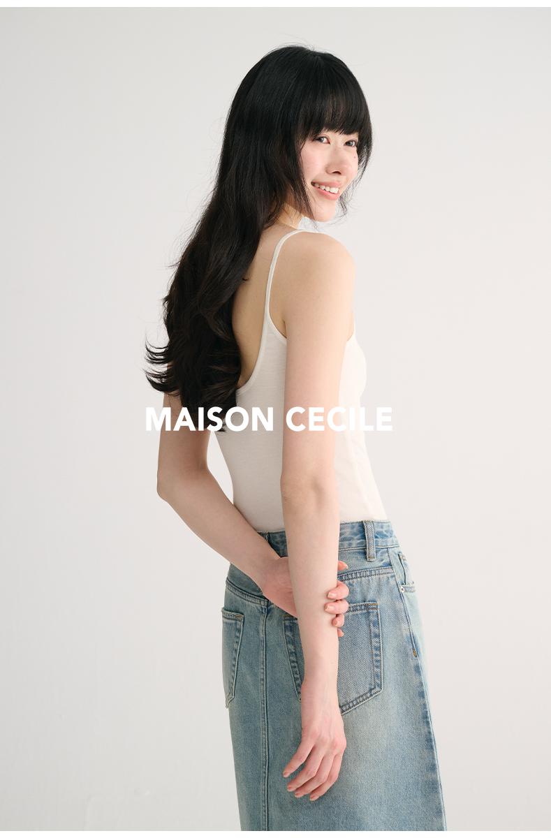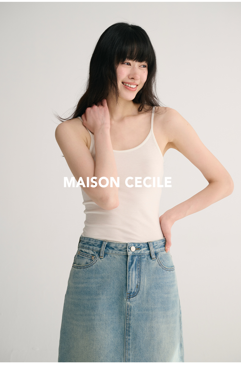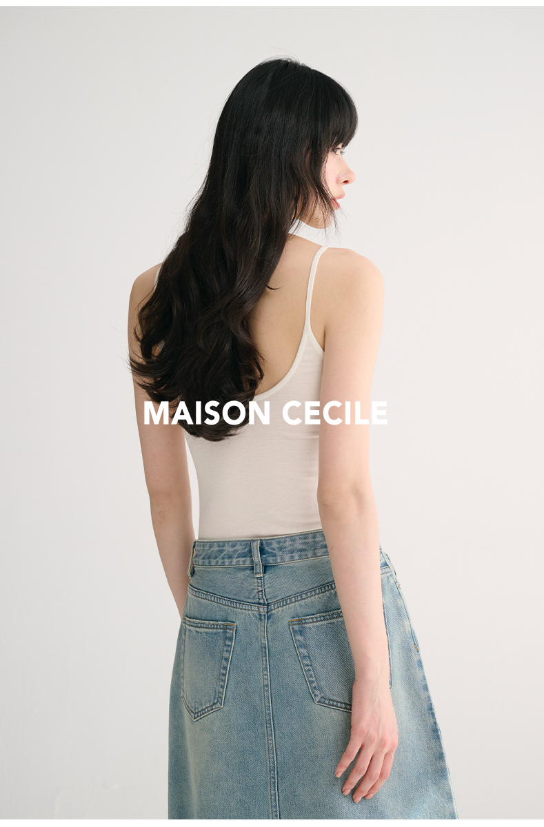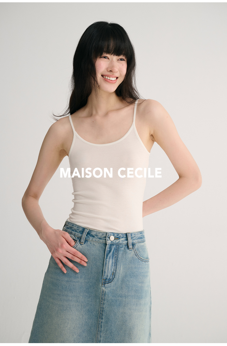 MAISON CECILE 三色/夏季bi备单品软糯羊毛大U领针织细肩带吊带
