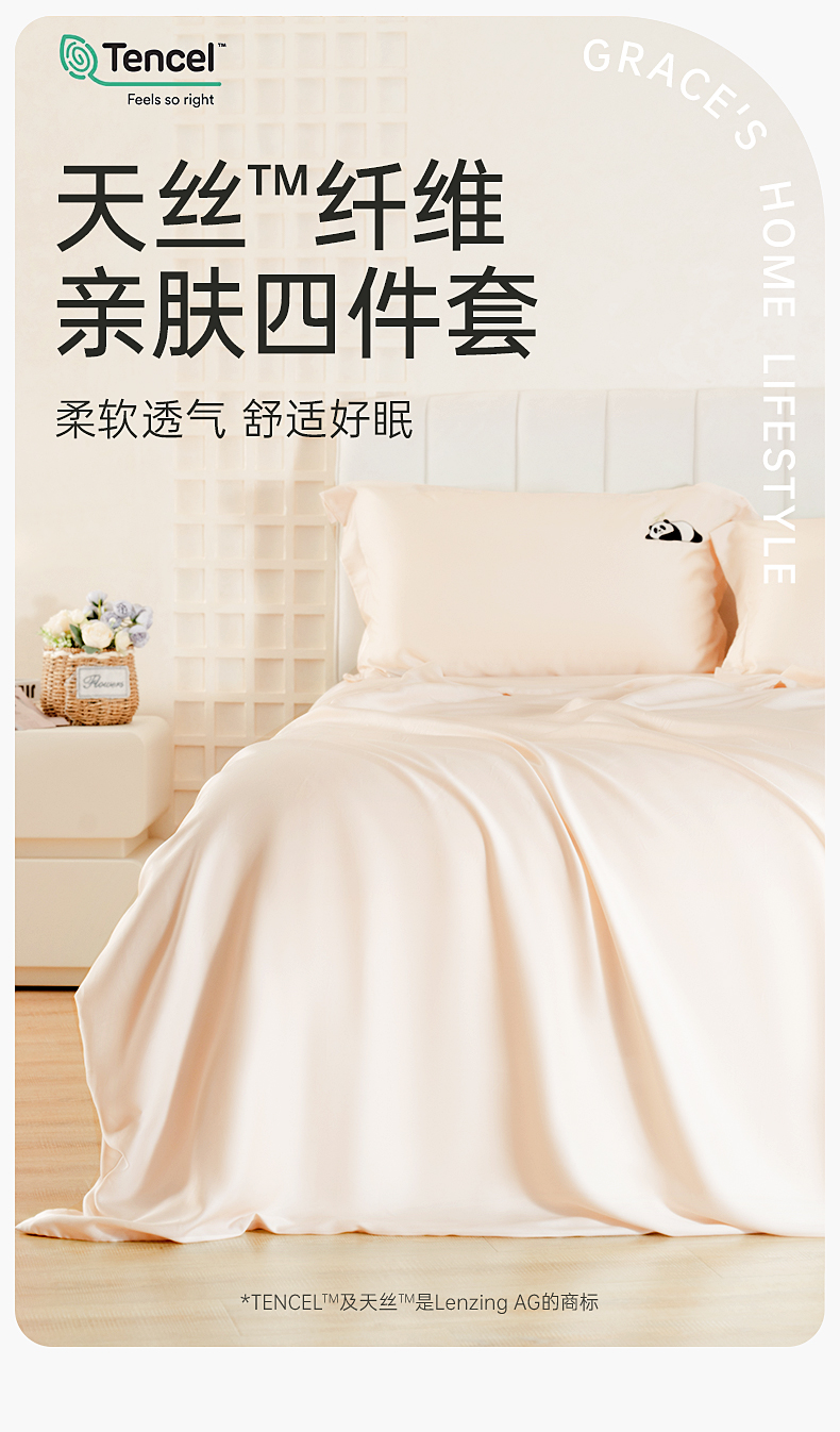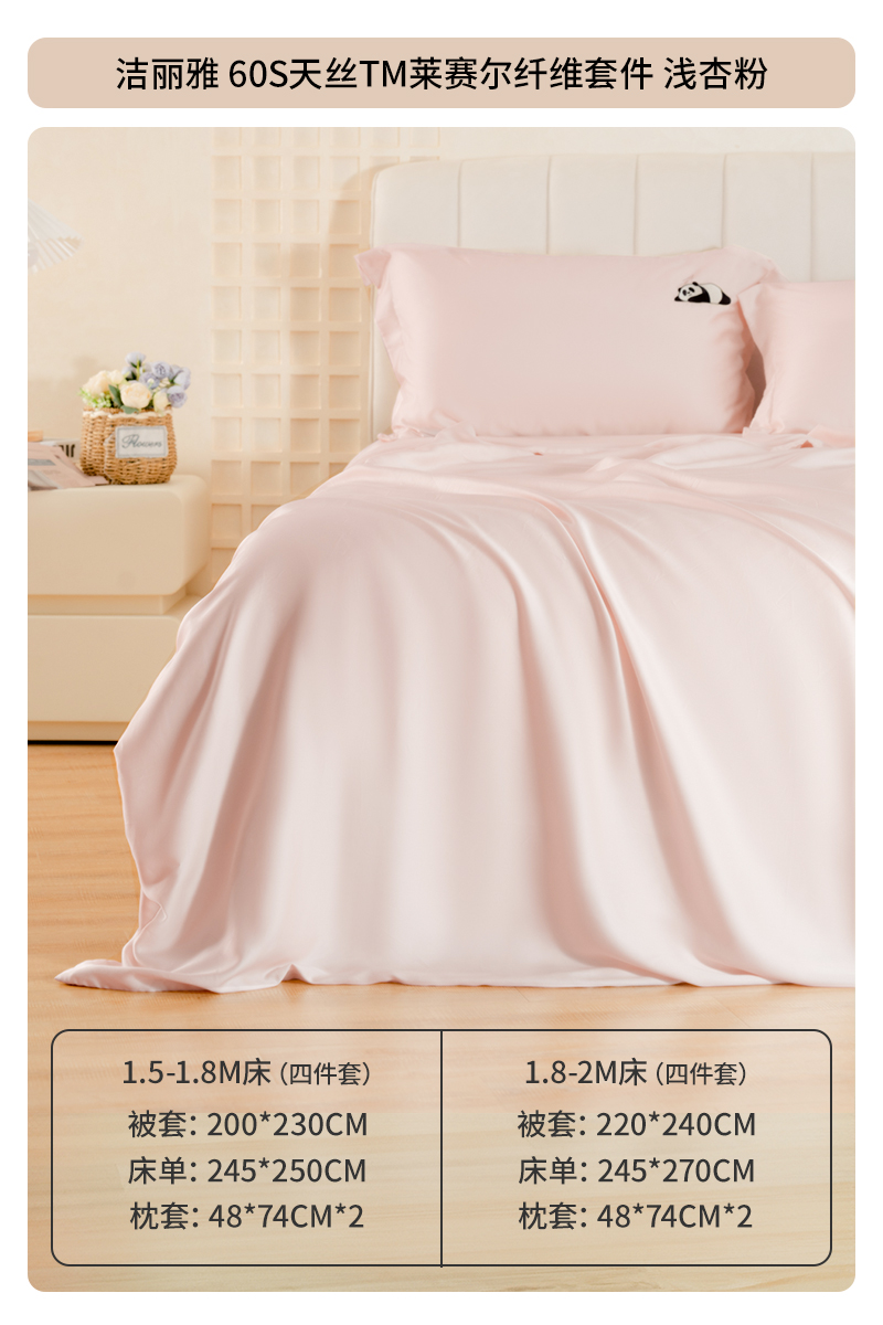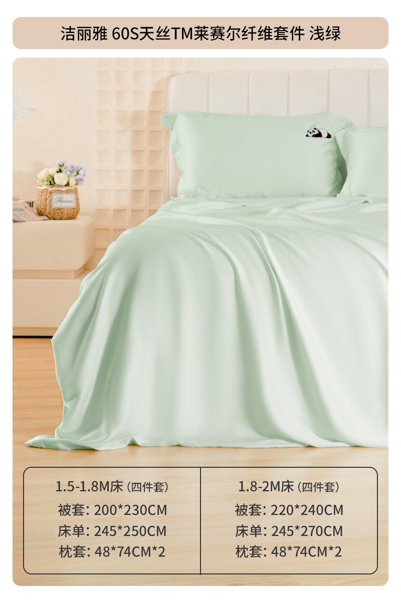 【洁丽雅】莱赛尔天丝纯色四件套 香槟色/浅杏粉/浅绿