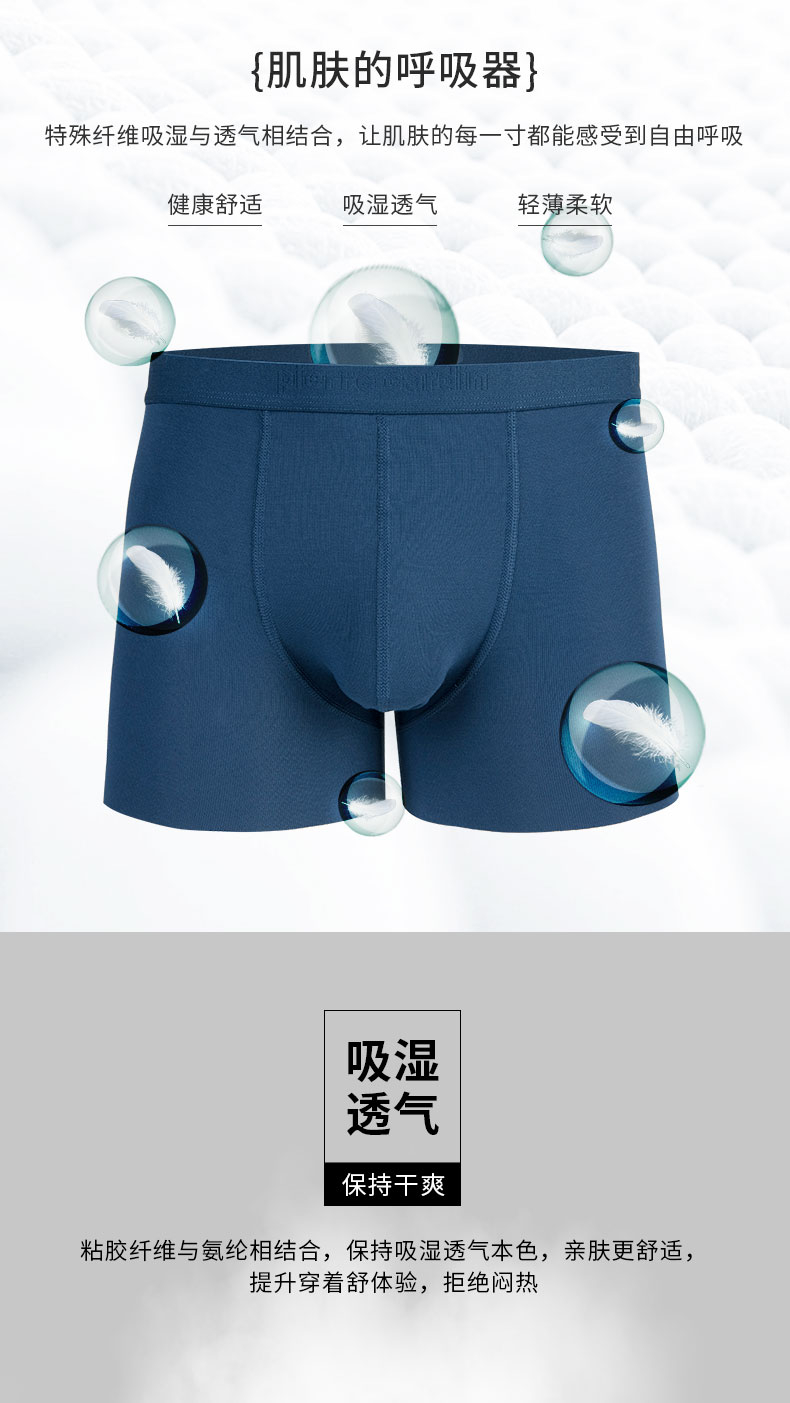 皮尔卡丹经典冰丝弹力无痕四角平角裤内裤男p537921