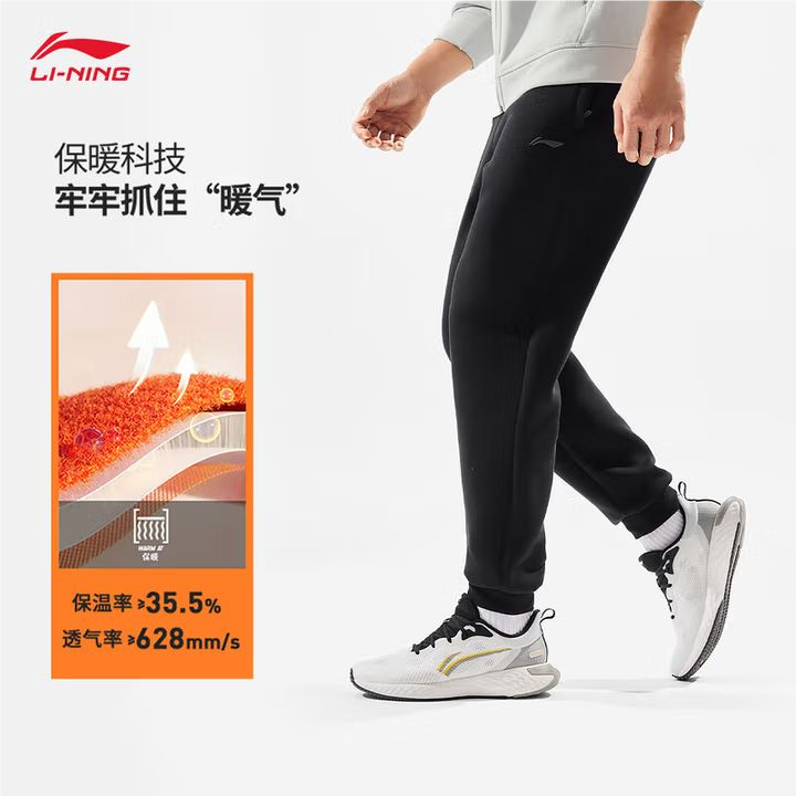 李宁男子冬季加绒保暖束脚运动裤AKLU553-1