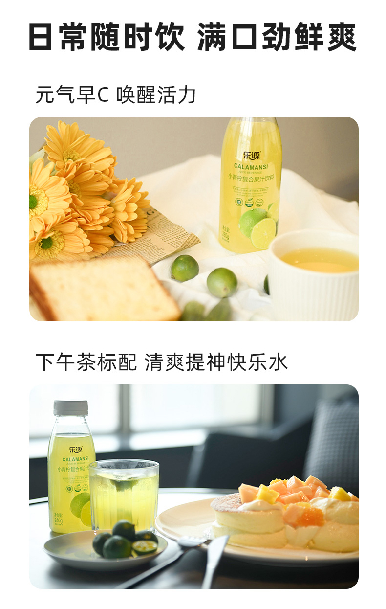 【直播专享】商超爆款 乐源小青柠汁饮料280g*8瓶 青桔柠檬汁复合果汁0脂小瓶整箱