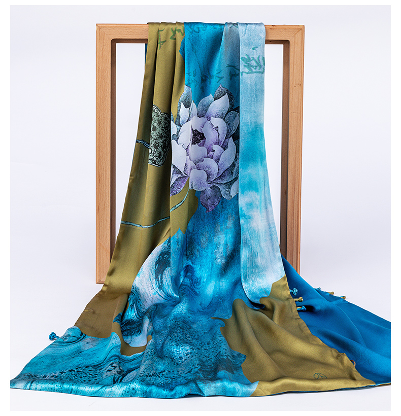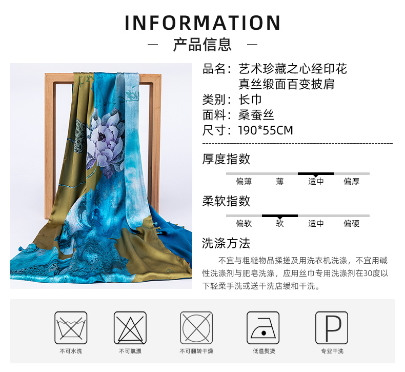绝代佳人艺术珍藏之心经印花真丝丝巾缎面百变防晒披肩桑蚕丝夏季