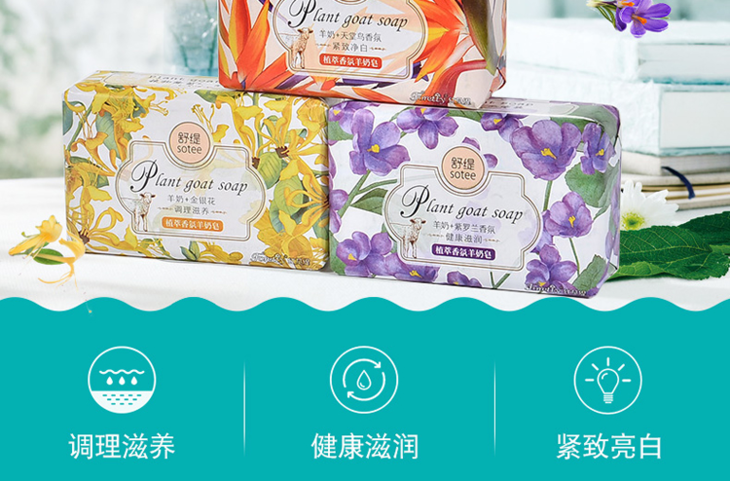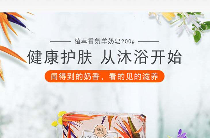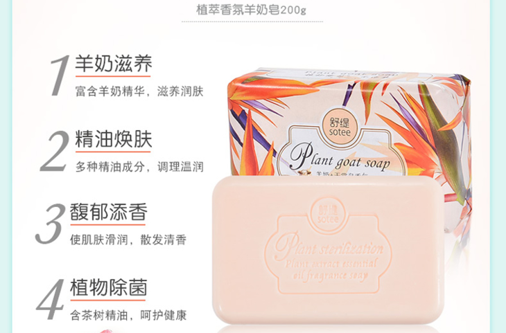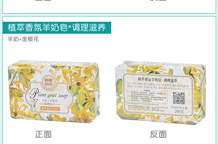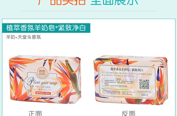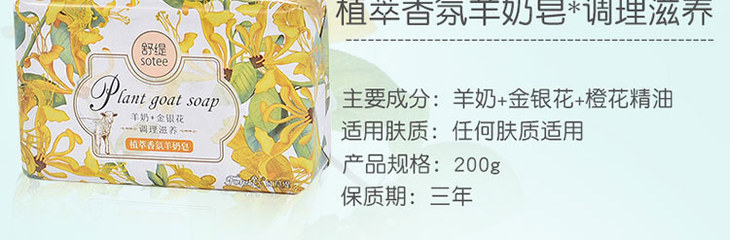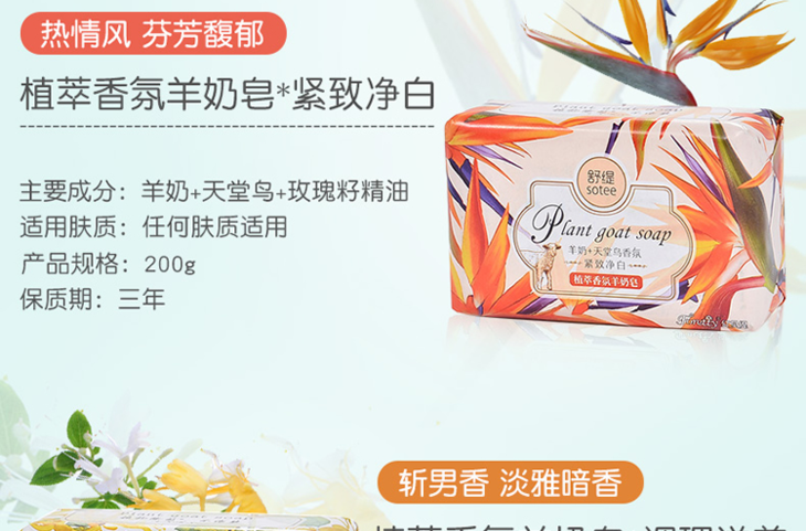 红贝缇*舒缇植萃香氛羊奶香皂调理滋养(金银花)200g/紧致净白(天堂鸟)无赠品