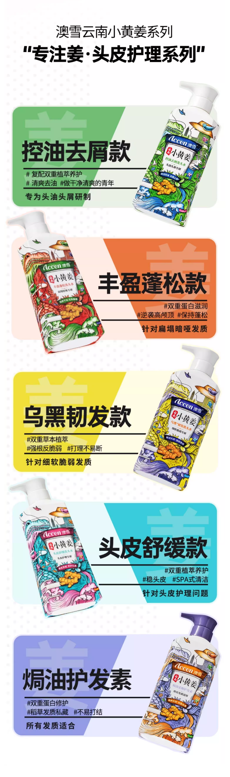 【35元会员福利】澳雪小黄姜洗发水300ml(丰盈蓬松/乌黑韧发/头皮舒缓/控油去屑)