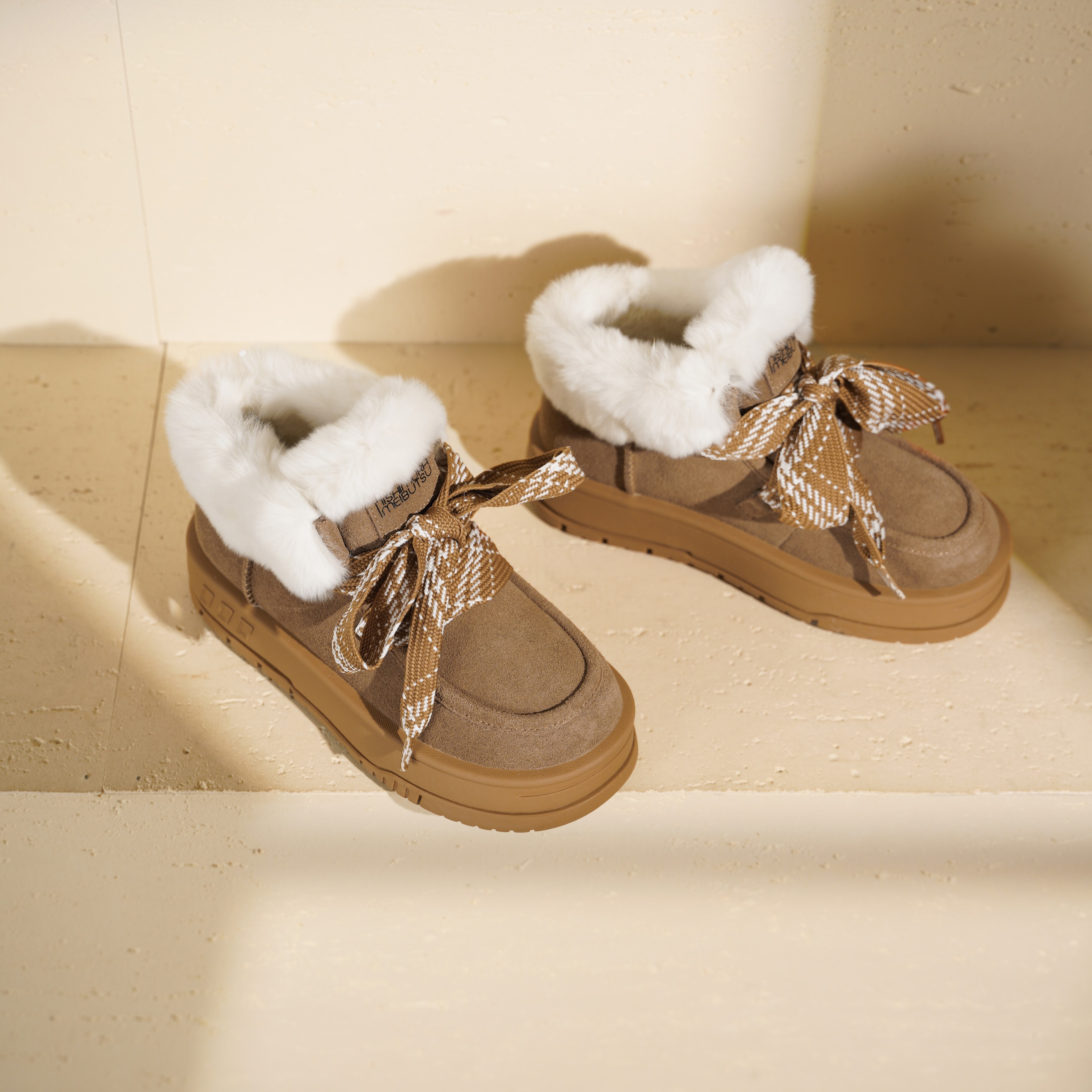 西村名物2025年冬季新款厚底加绒保暖雪地靴气质贝果系列棉鞋毛毛鞋短靴T25DS49171