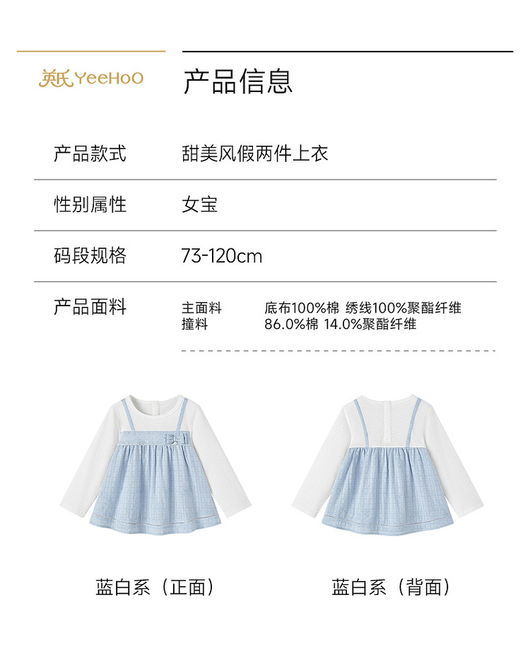 英氏儿童T恤女童长袖上衣春夏新百搭假两件圆领上衣YRTAJ1S007A