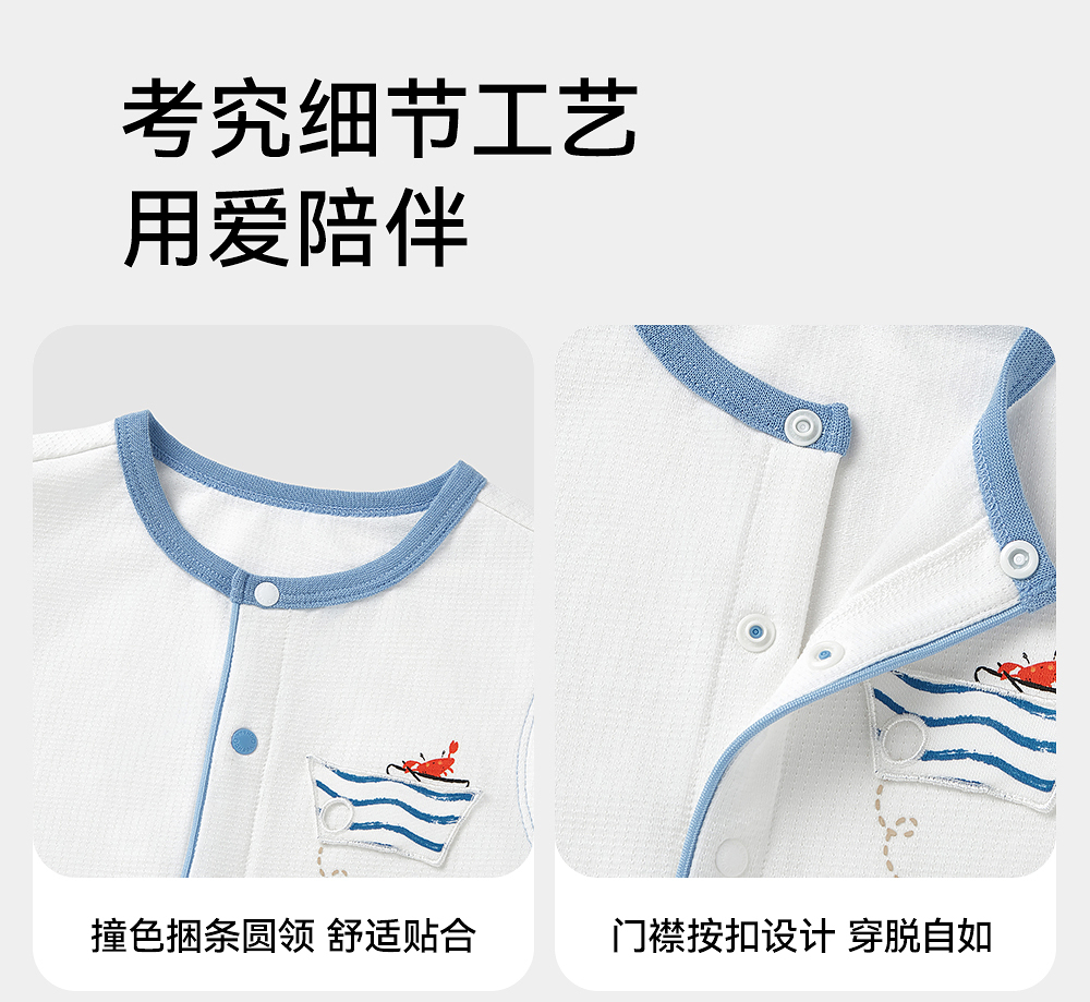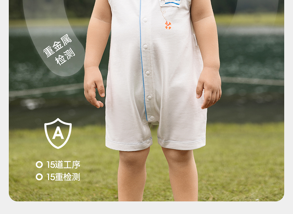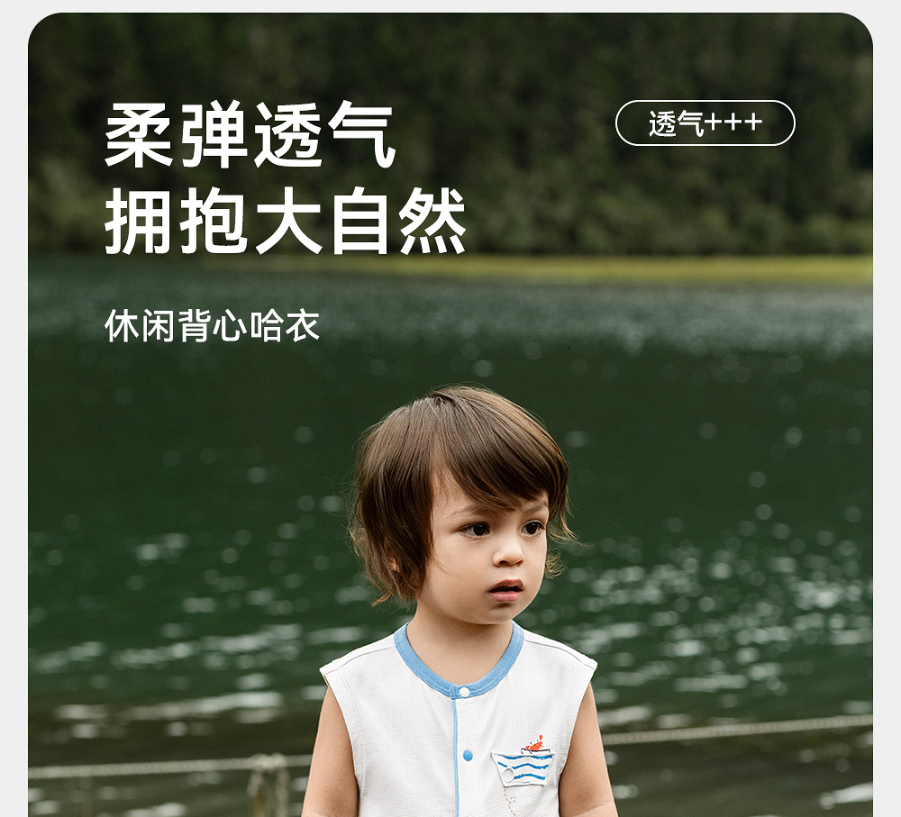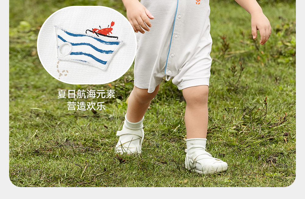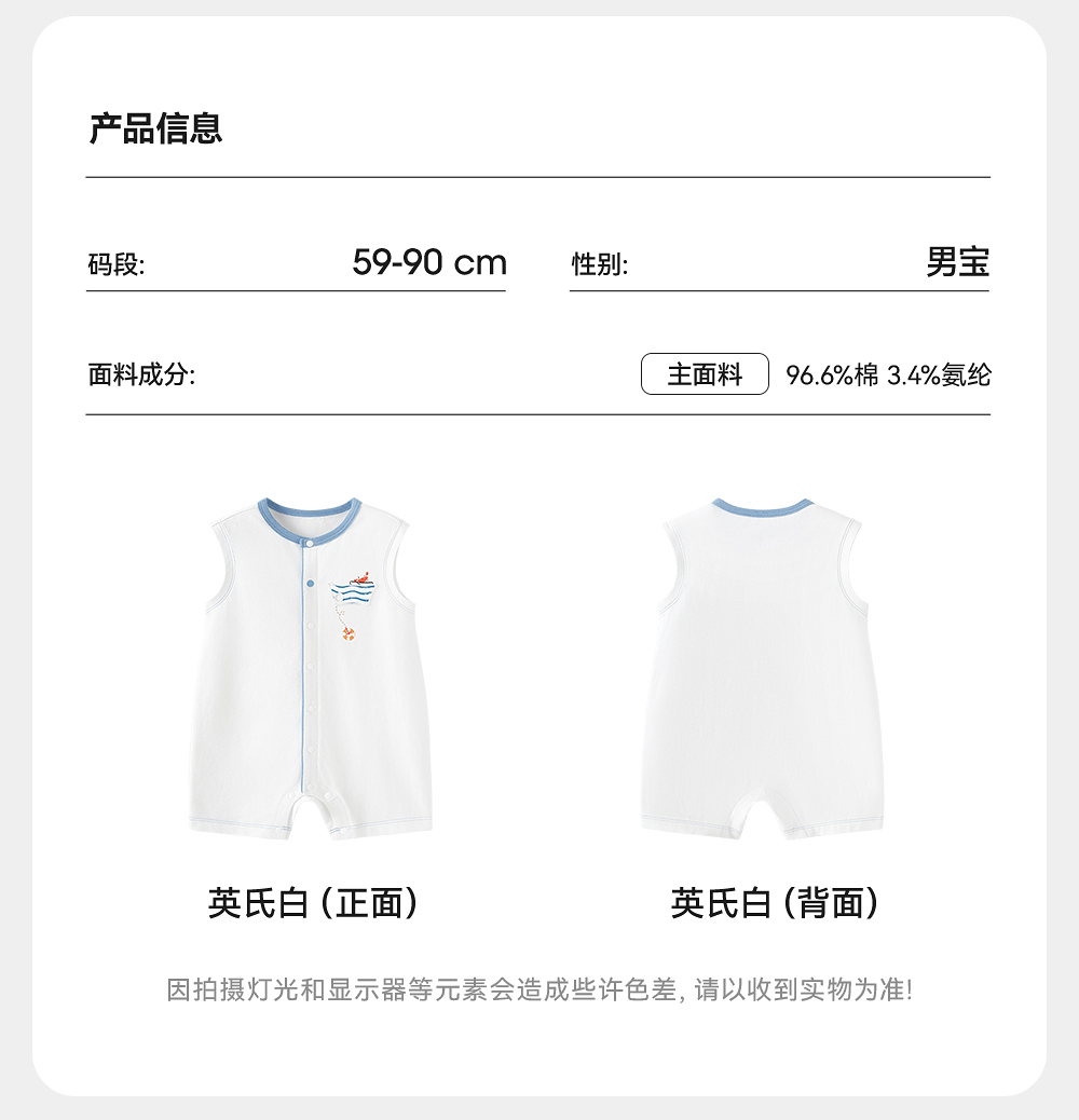 英氏童装连体衣夏季透气背心婴儿衣服轻薄男童包屁衣YRHCJ2R062A