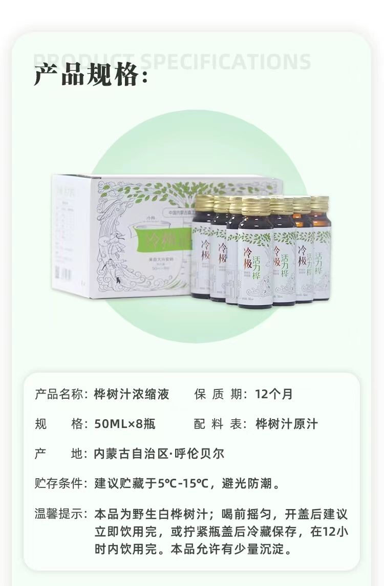 自营(山蒙海时)-冷极活力桦桦树汁浓缩液桦树汁原液植物饮料礼盒装50ml*8