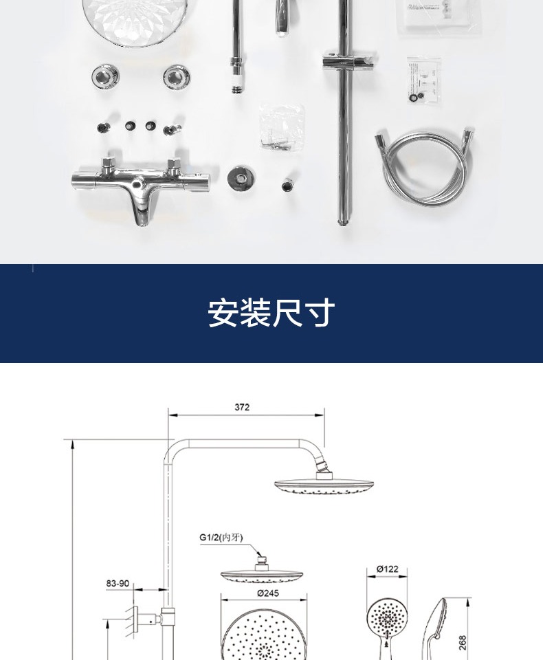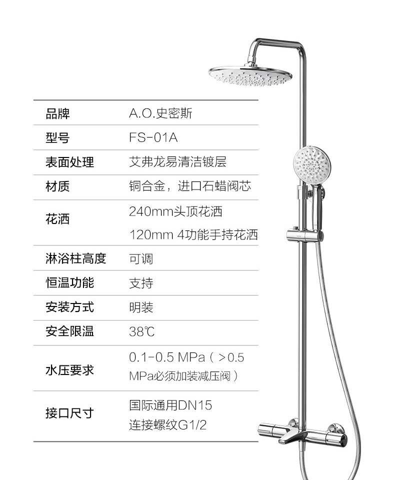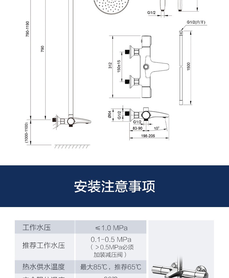 | 花洒支架类型: 带升降 | 淋浴花洒龙头类型: 双花洒龙头 |