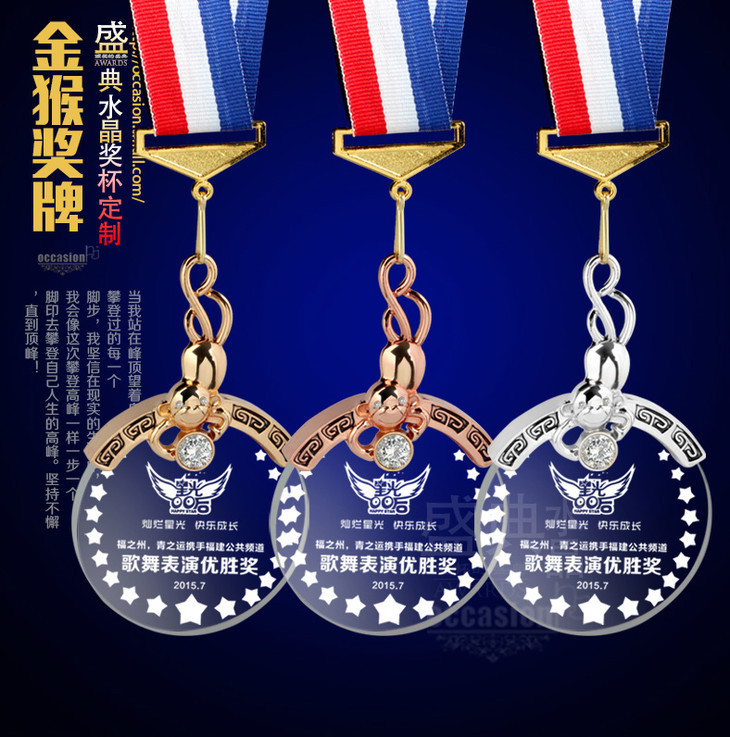 猴年新款水晶奖杯奖牌 定制比赛奖章奖品 纪念品定做