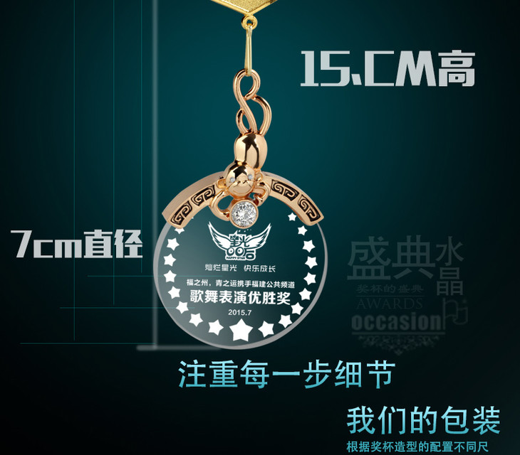 高档水晶奖杯定制金属奖章比赛颁奖纪念品刻字订做企业年会大奖杯