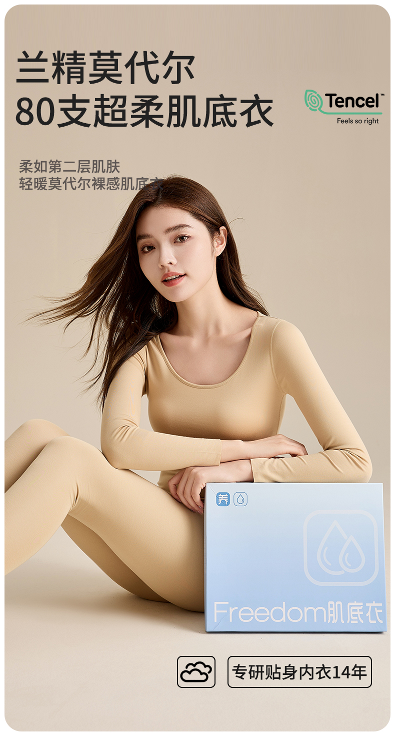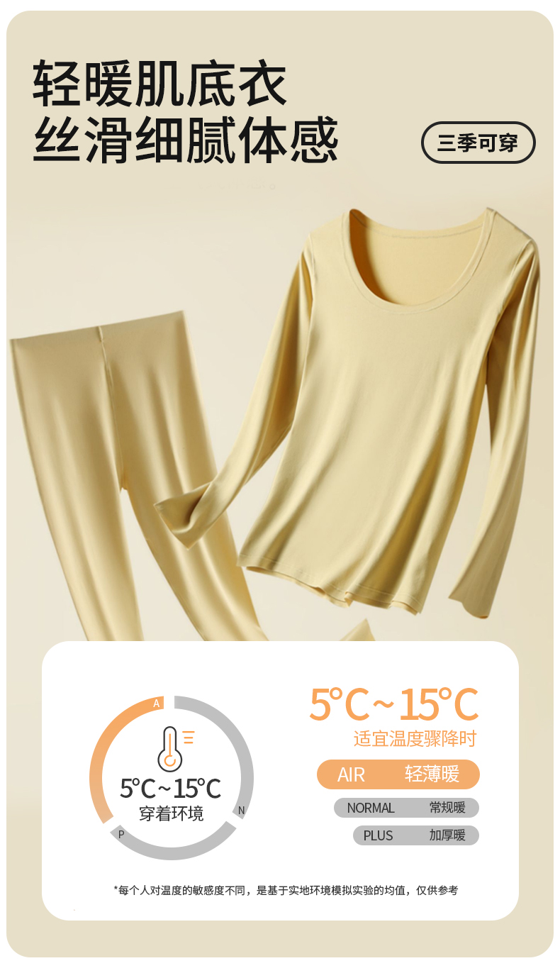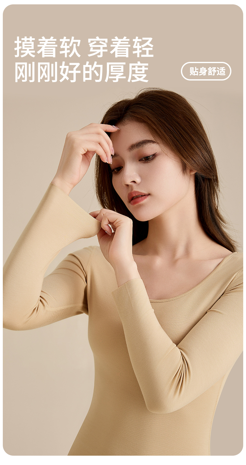 【大圆领 保暖内衣套装女款】莫代尔80支超柔肌底衣,环保亲肤,7A级抗菌,耐磨抗起球。