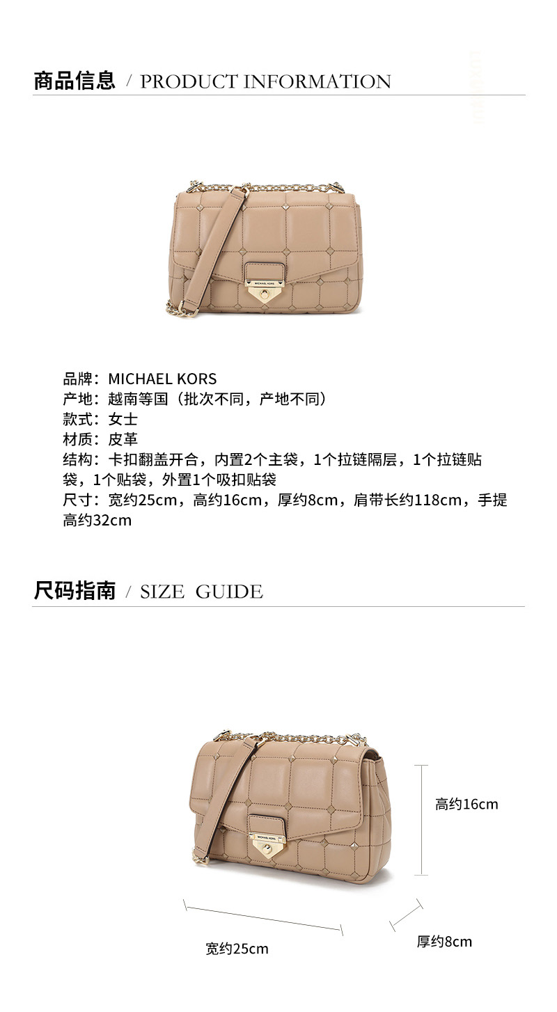 【高圆圆同款】Michael Kors/迈克·科尔斯 2021款 MK女包 SOHO系列皮革铆钉装饰手提单肩斜挎包 30T1L1SL3L