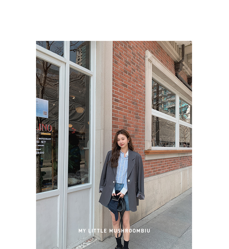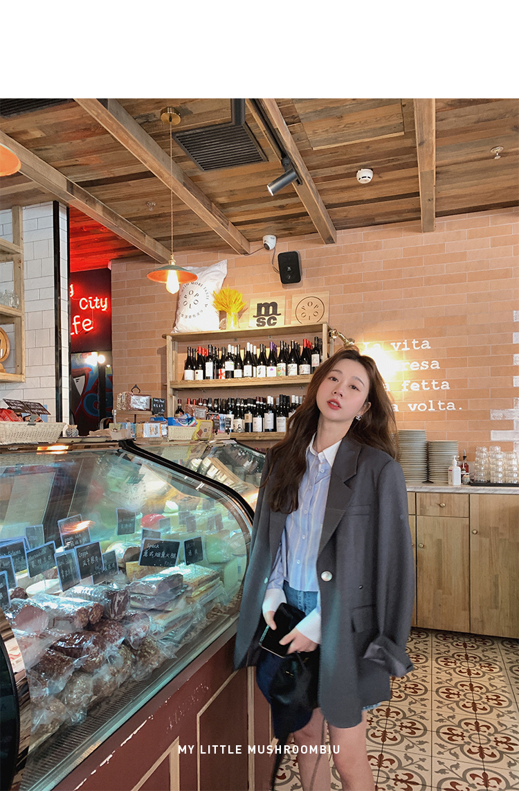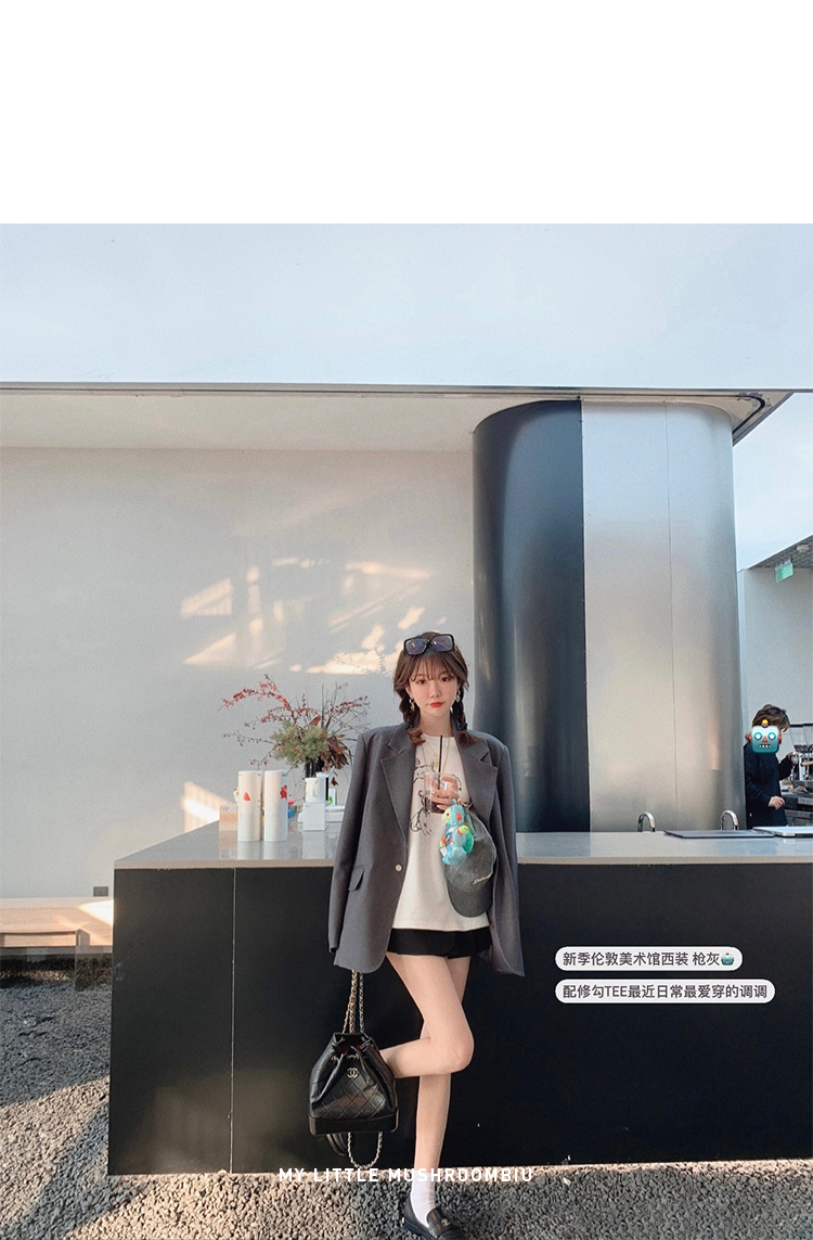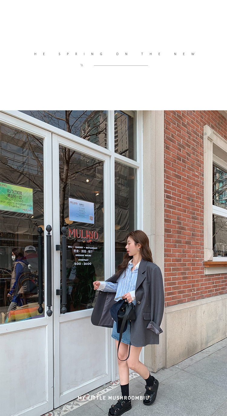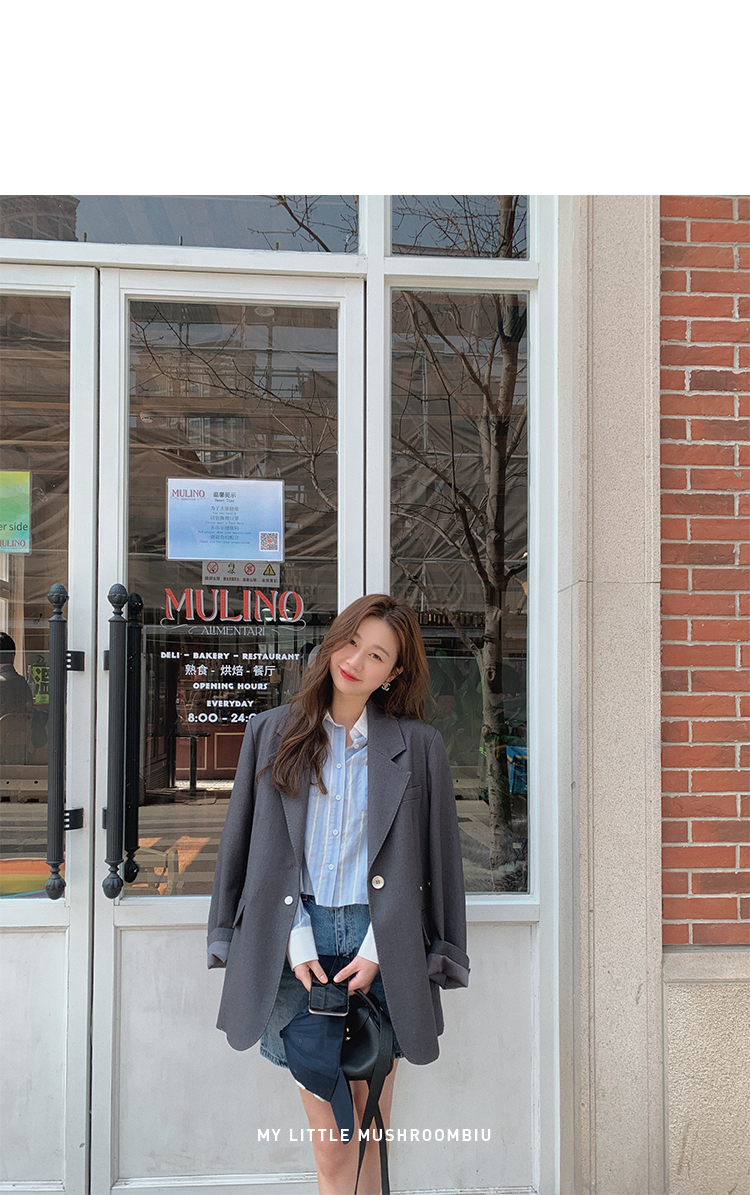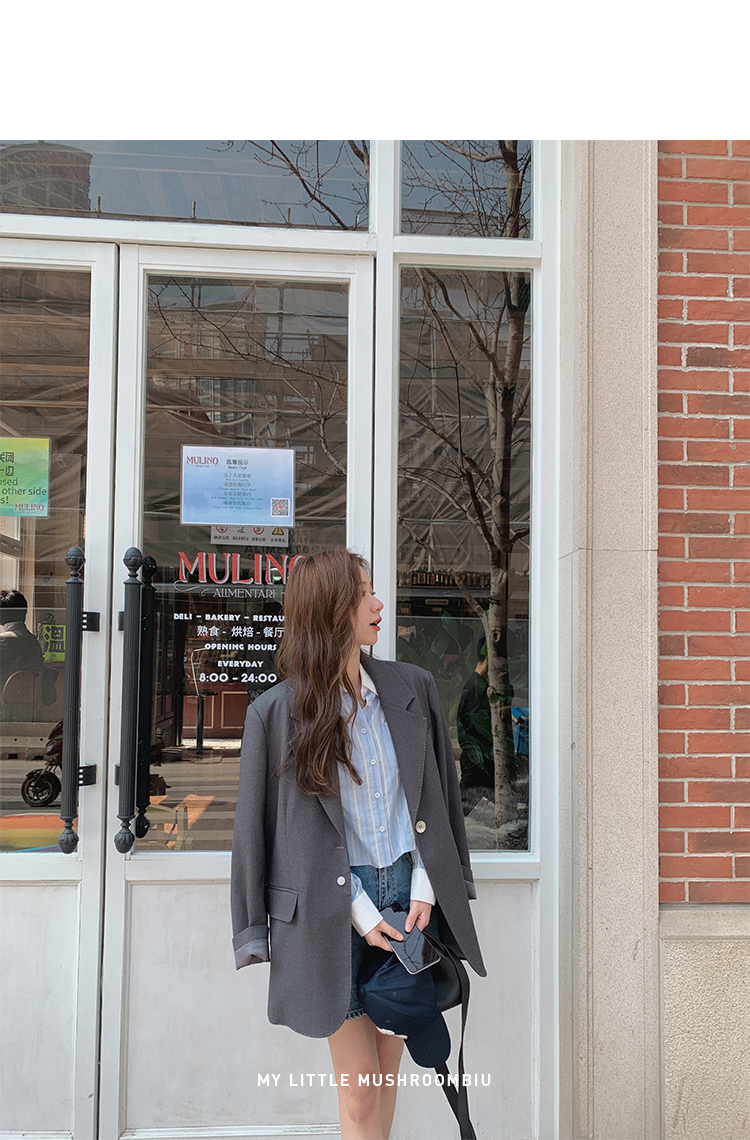 旧金山冷棕/碎冰蓝 金蘑菇菇【黑标线!伦敦美术馆西装】银扣tr斜纹气质炸街休闲外套