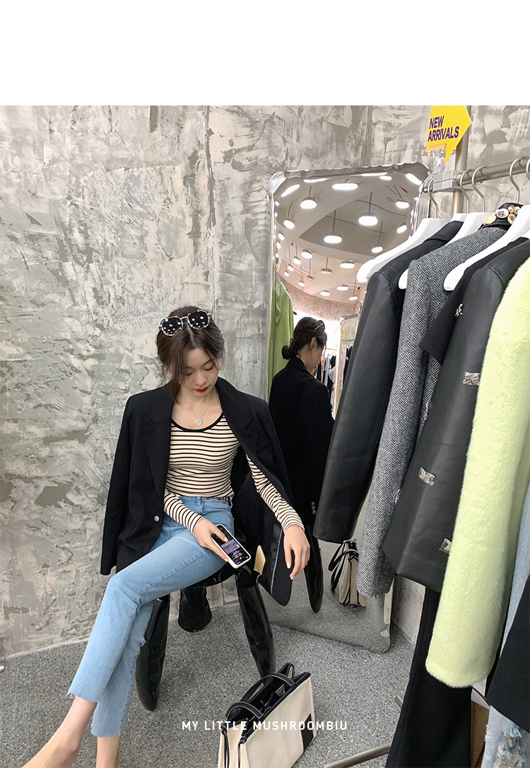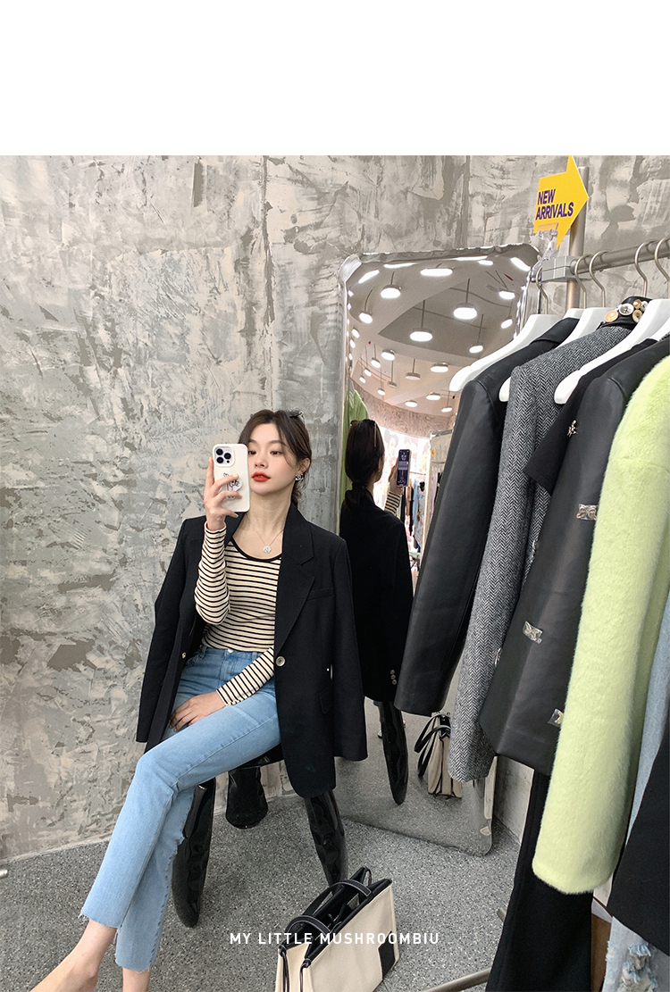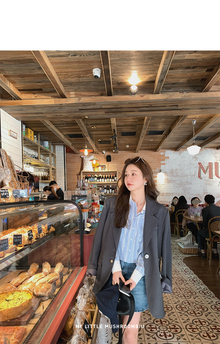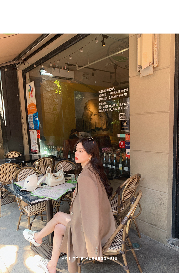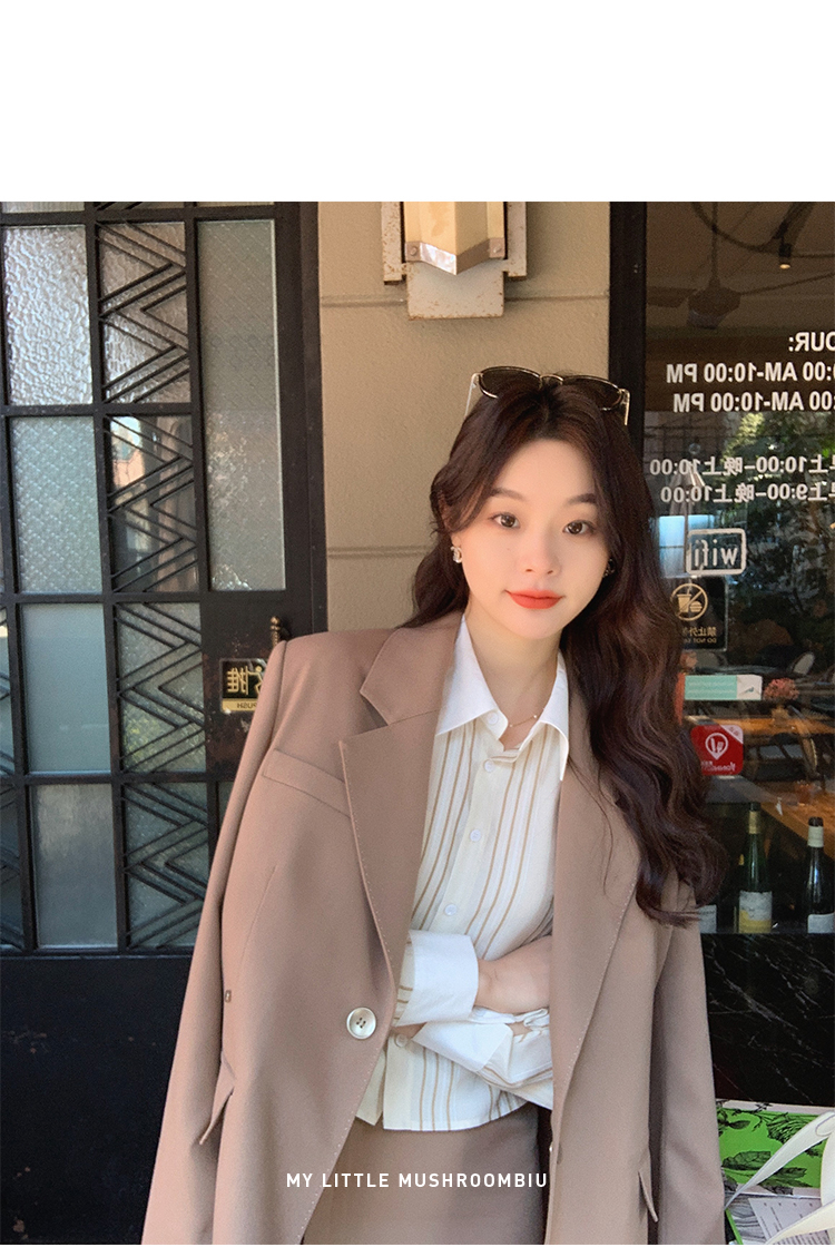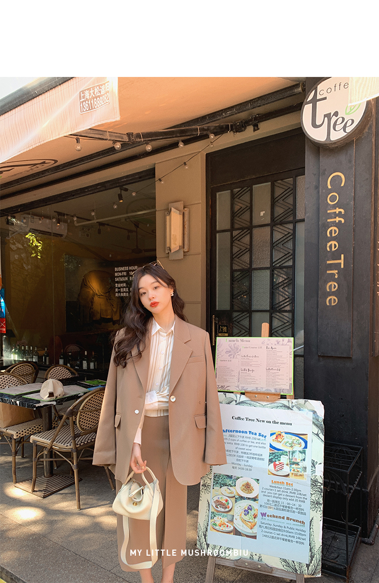 旧金山冷棕/碎冰蓝 金蘑菇菇【黑标线!伦敦美术馆西装】银扣tr斜纹气质炸街休闲外套