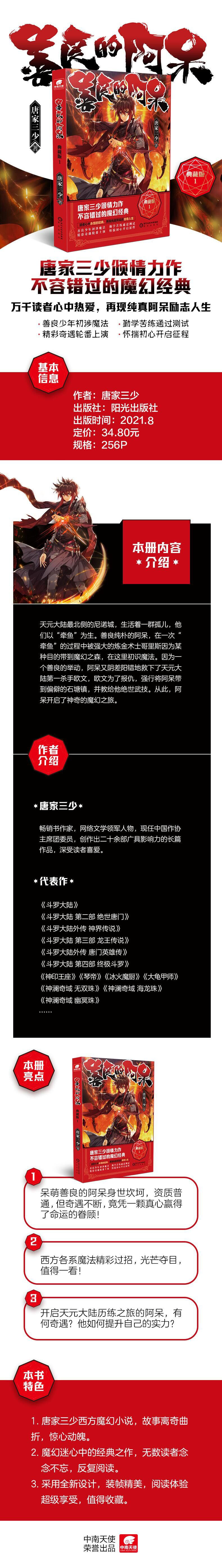 《善良的阿呆 典藏版》原名《善良的死神》,唐家三少2005年完成,是作者在写作过程中把自己写哭的一部作品,也是作者自称最能感动自己一部作品。 作者匠心独运,通过虚构的情节精心刻画人物,让人物的命运与小说情节紧密地联系在一起。主角阿呆心性善良,人如其名,生性木讷,却大智若愚,每当同伴遇到危险时,总会展现沉着勇敢的一面。 阿呆是善良与邪恶的结合,光明与黑暗的统一! 同时,小说中以阿呆为首的一群年轻人不断提升自我,勇于实现梦想,敢于担当的精神令人动容。他们迎难而上、拼搏进取、破茧成长的逆袭历程也激励着一代又一代的读者,整部作品荡气回肠,极具励志性。