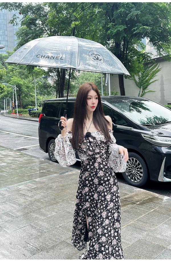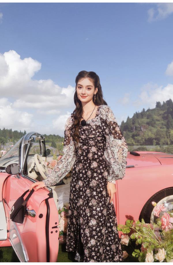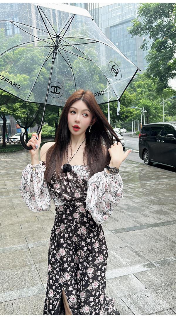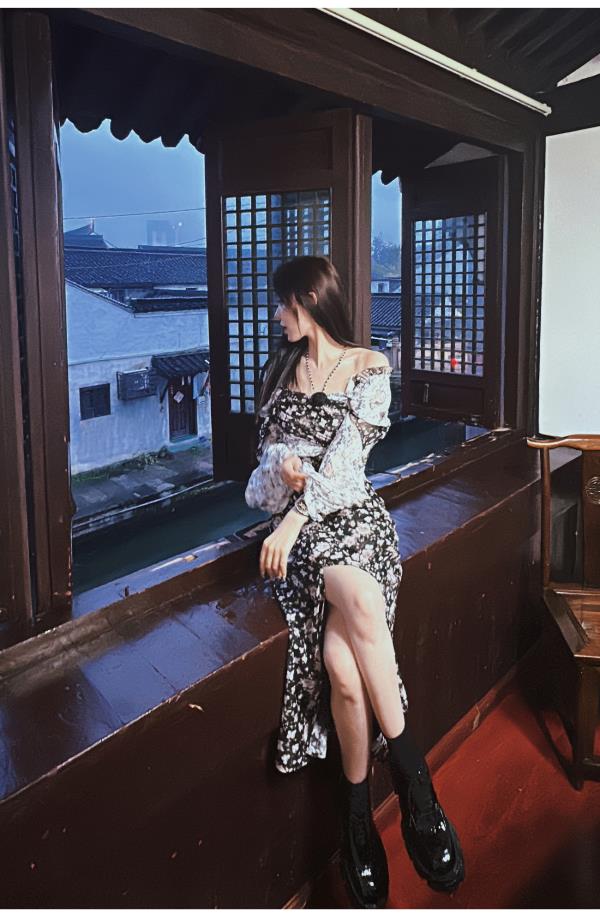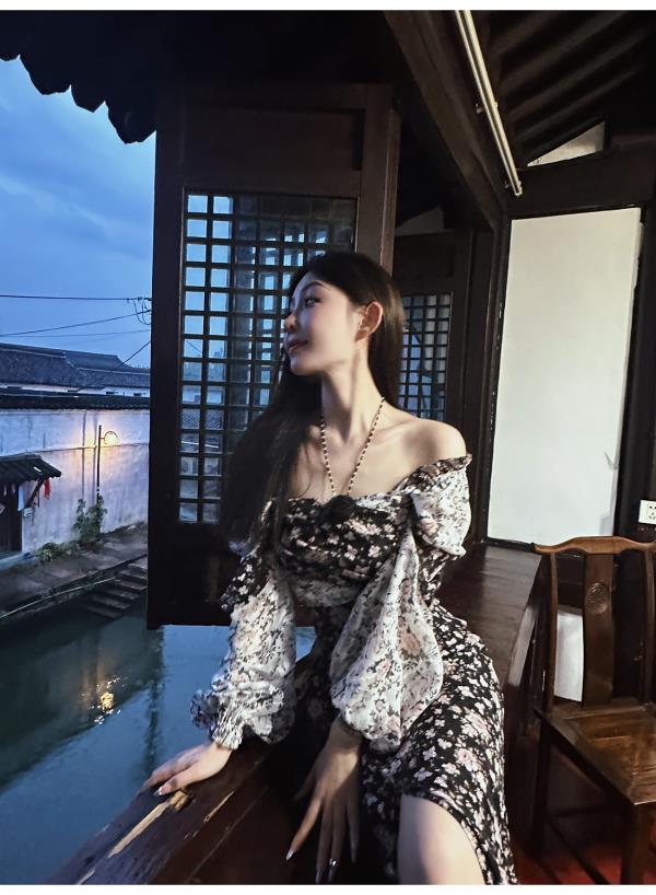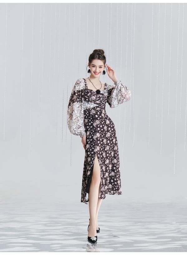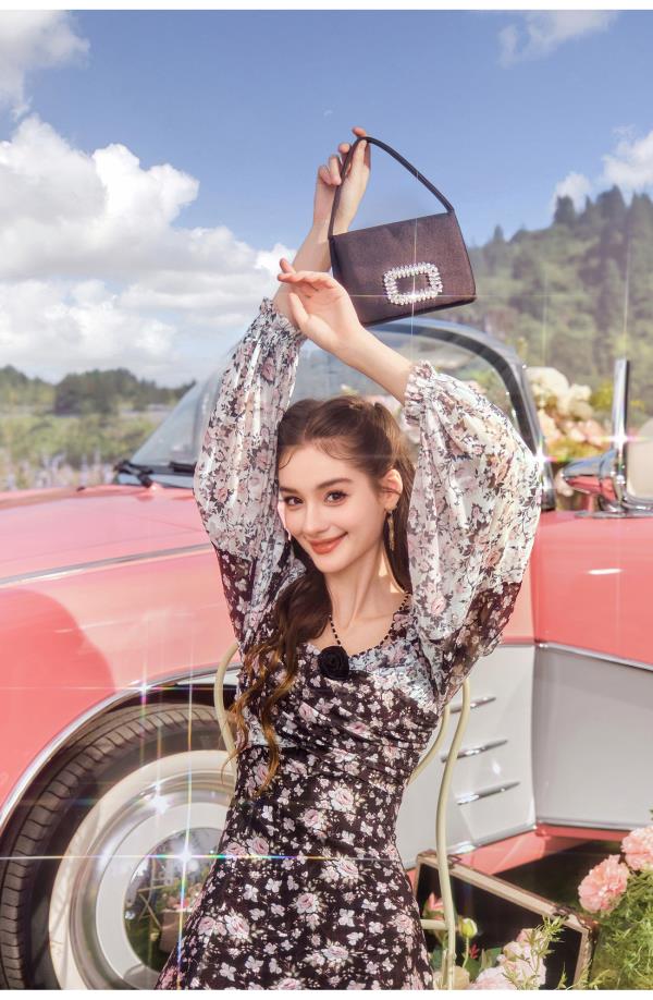 【孤品样衣,不退不换】【玫瑰花后】气质复古碎花方领开叉连衣裙新款夏