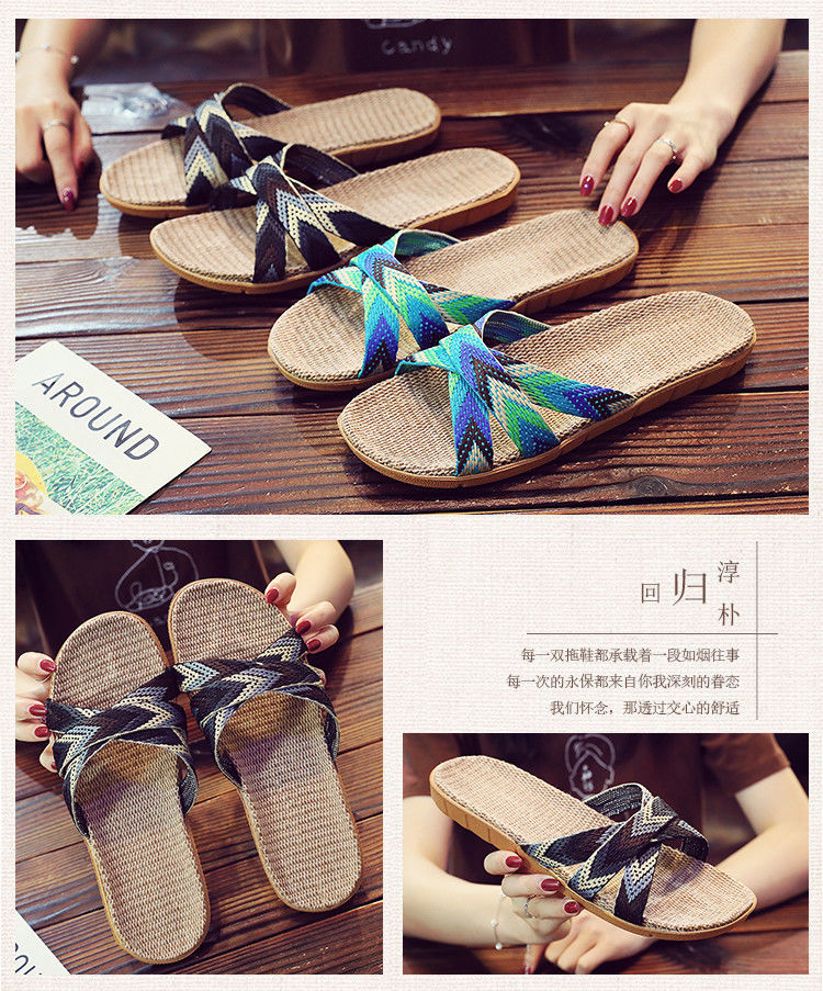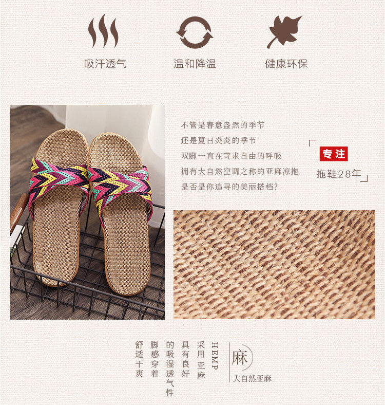 【亚麻拖鞋】女夏天家用室内居家办公室地板防滑底情侣卧室凉拖鞋男