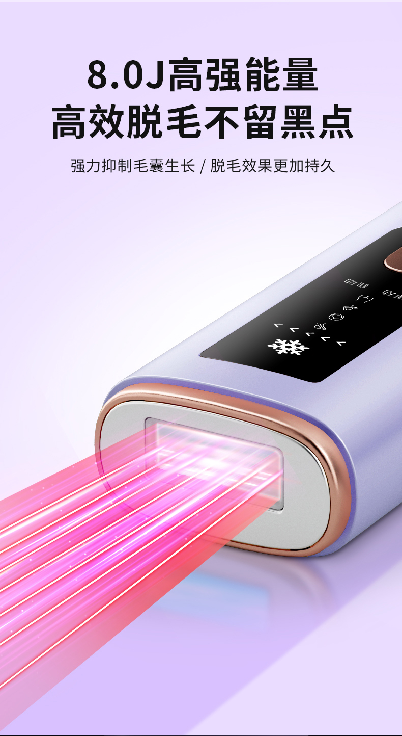 大能量:5.0J~8.0J脉冲高强能量,深入毛囊,大能量脉冲,效果明显;