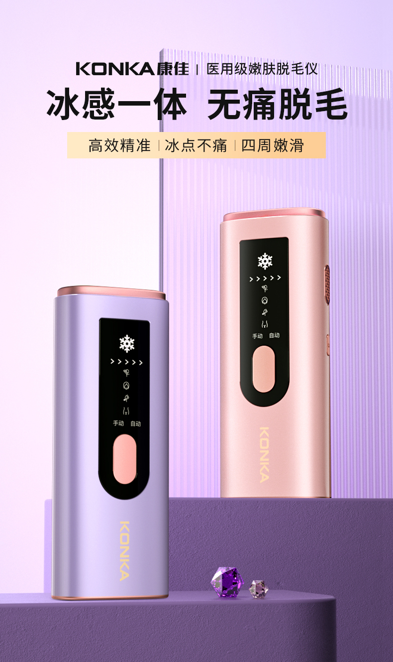 【精致女神 冰感一体 无痛脱毛】 康佳2023新款嫩肤脱毛仪 创新冰触技术 冰脱同步 标配刮毛刀+芦荟胶+护目镜