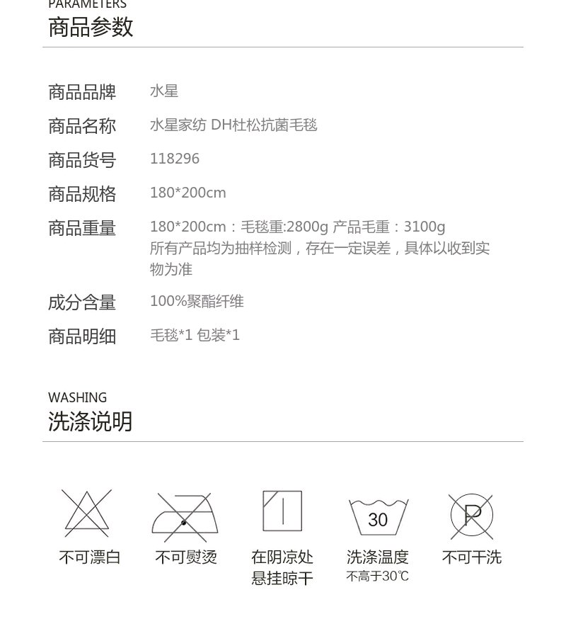 水星家纺日用抗菌毯—杜松180*200cm 2800g