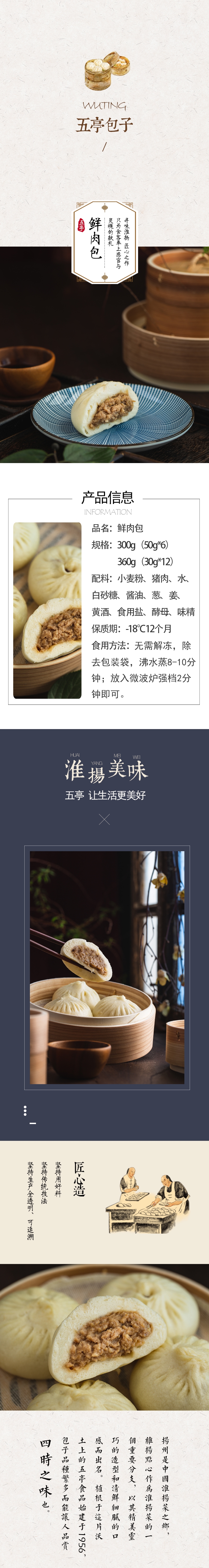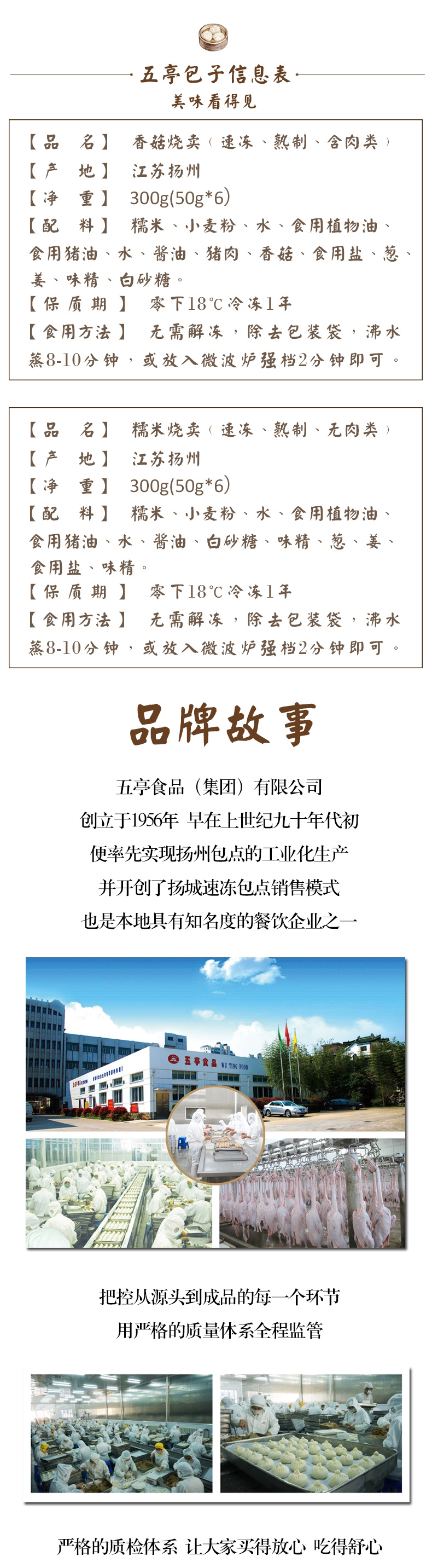 五亭牌扬州速冻包子烧麦组合(鲜肉包2袋、荠菜包2袋、萝卜丝包2袋、糯米烧麦2袋) 扬州风味特产