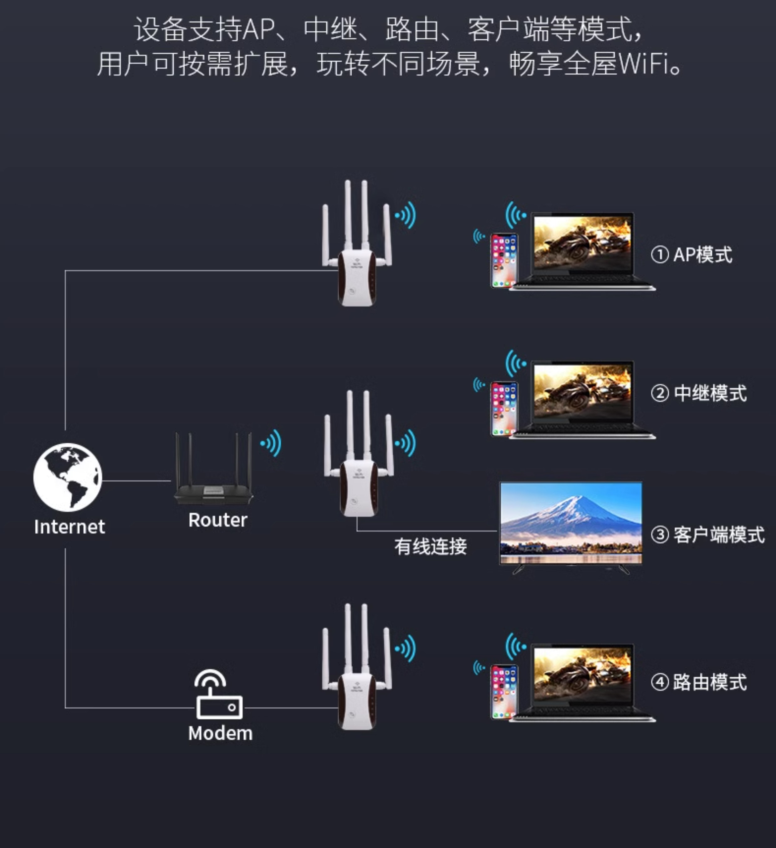 wifi信号放大器家用扩大器增强器加强中继无线网络路由器随身穿墙
