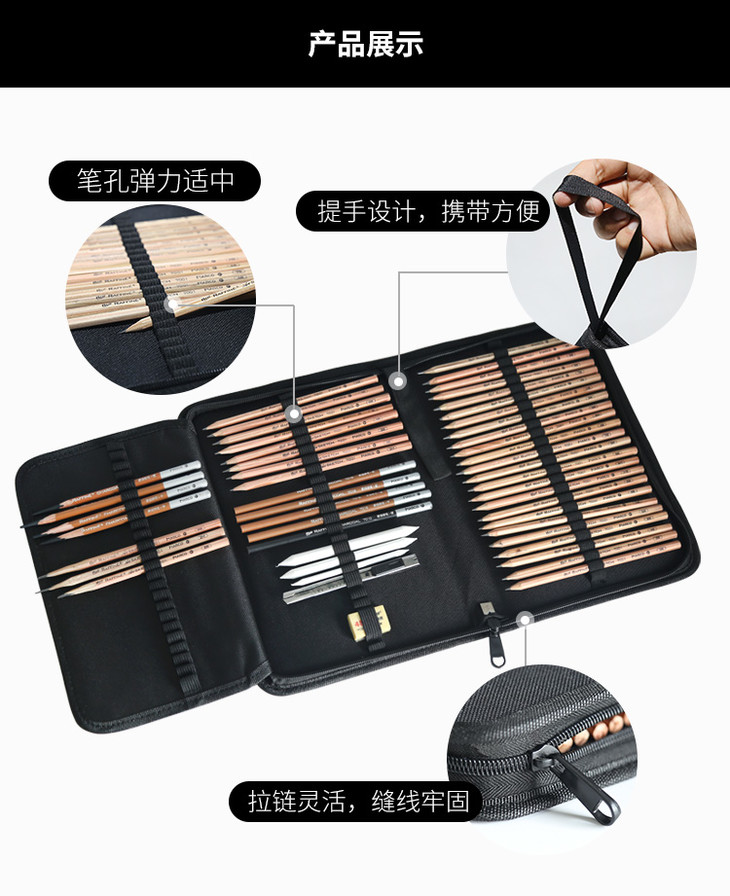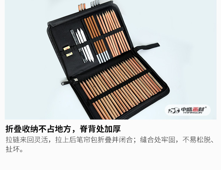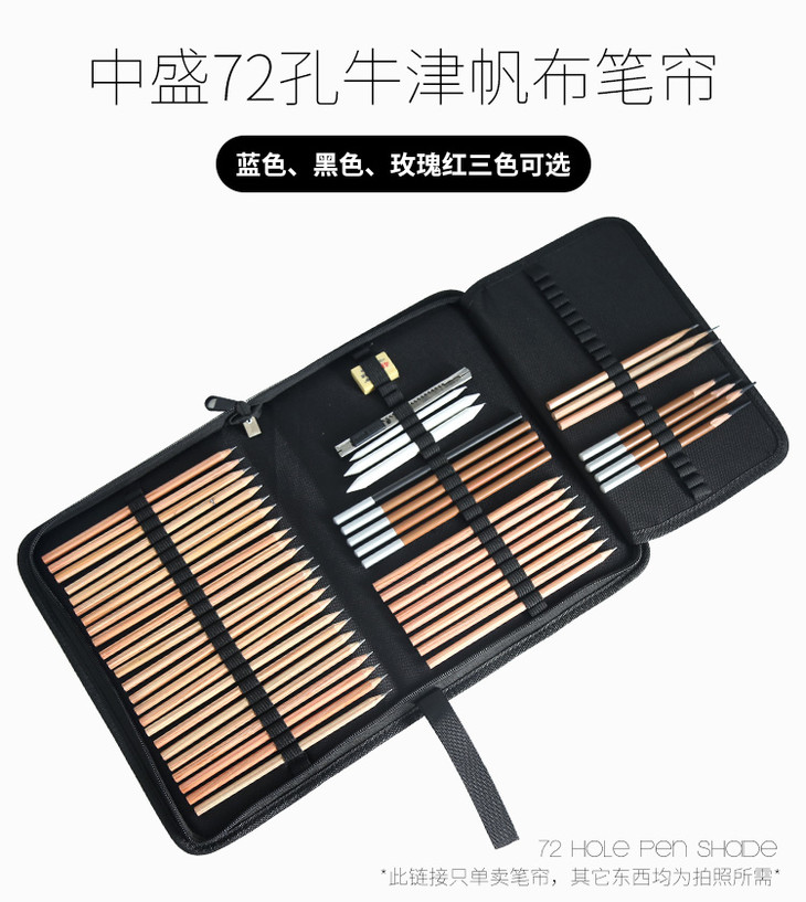 中盛画材 新型72孔对折带拉链式硬笔帘包工具袋 画笔包笔帘
